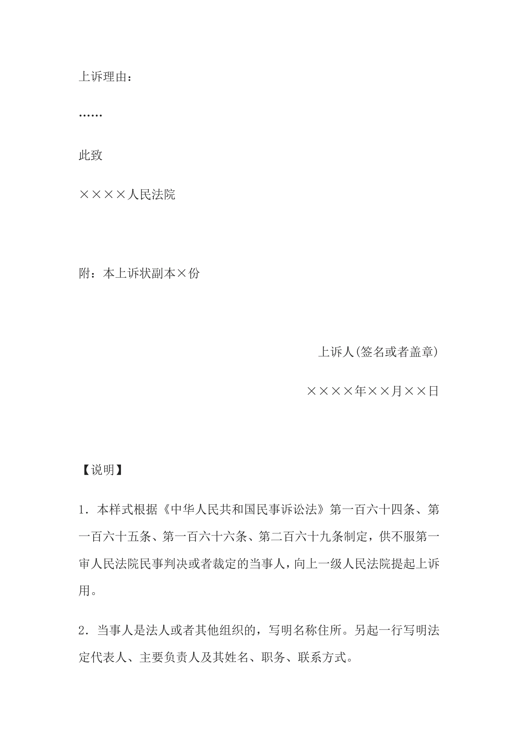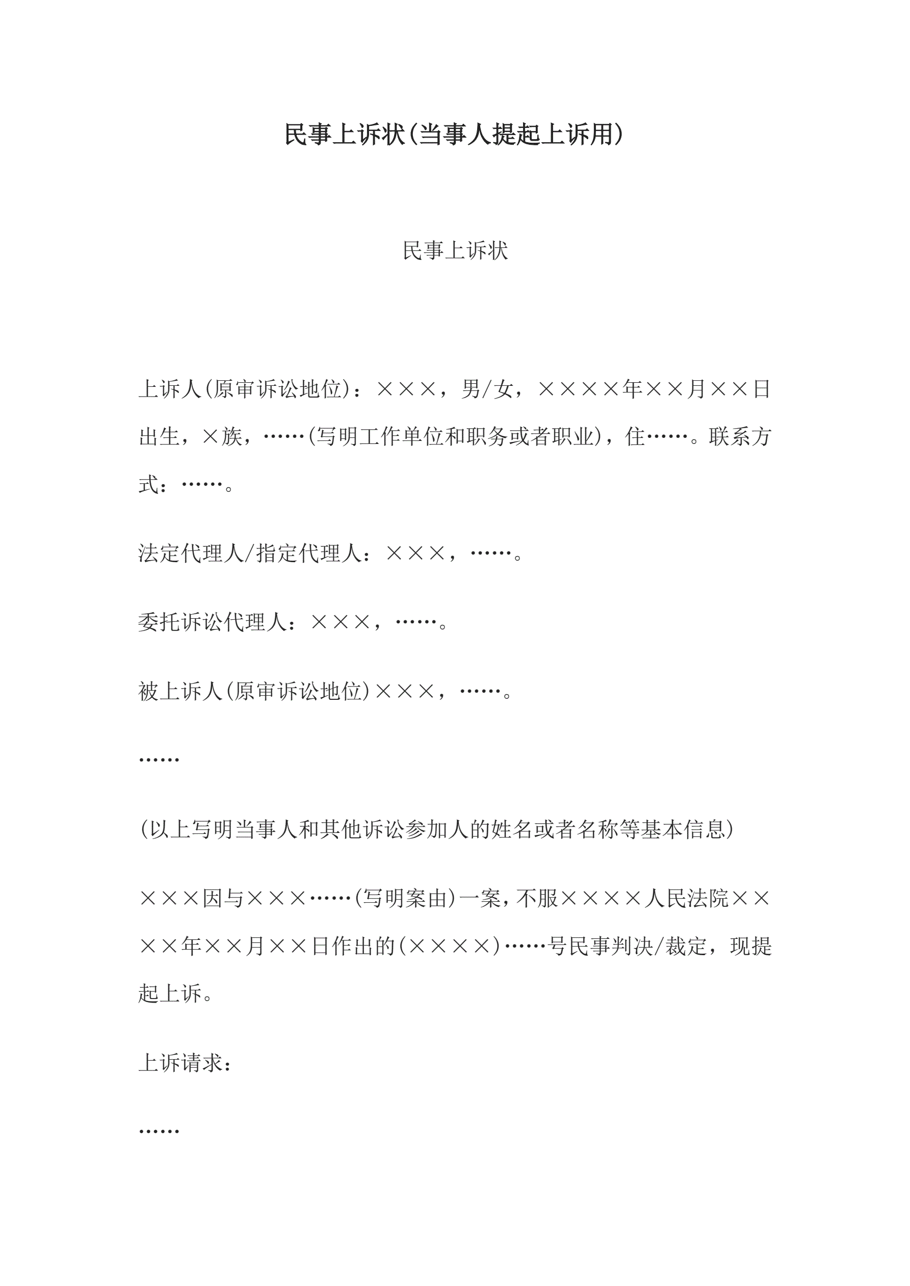 >民事上诉状(当事人提起上诉用)