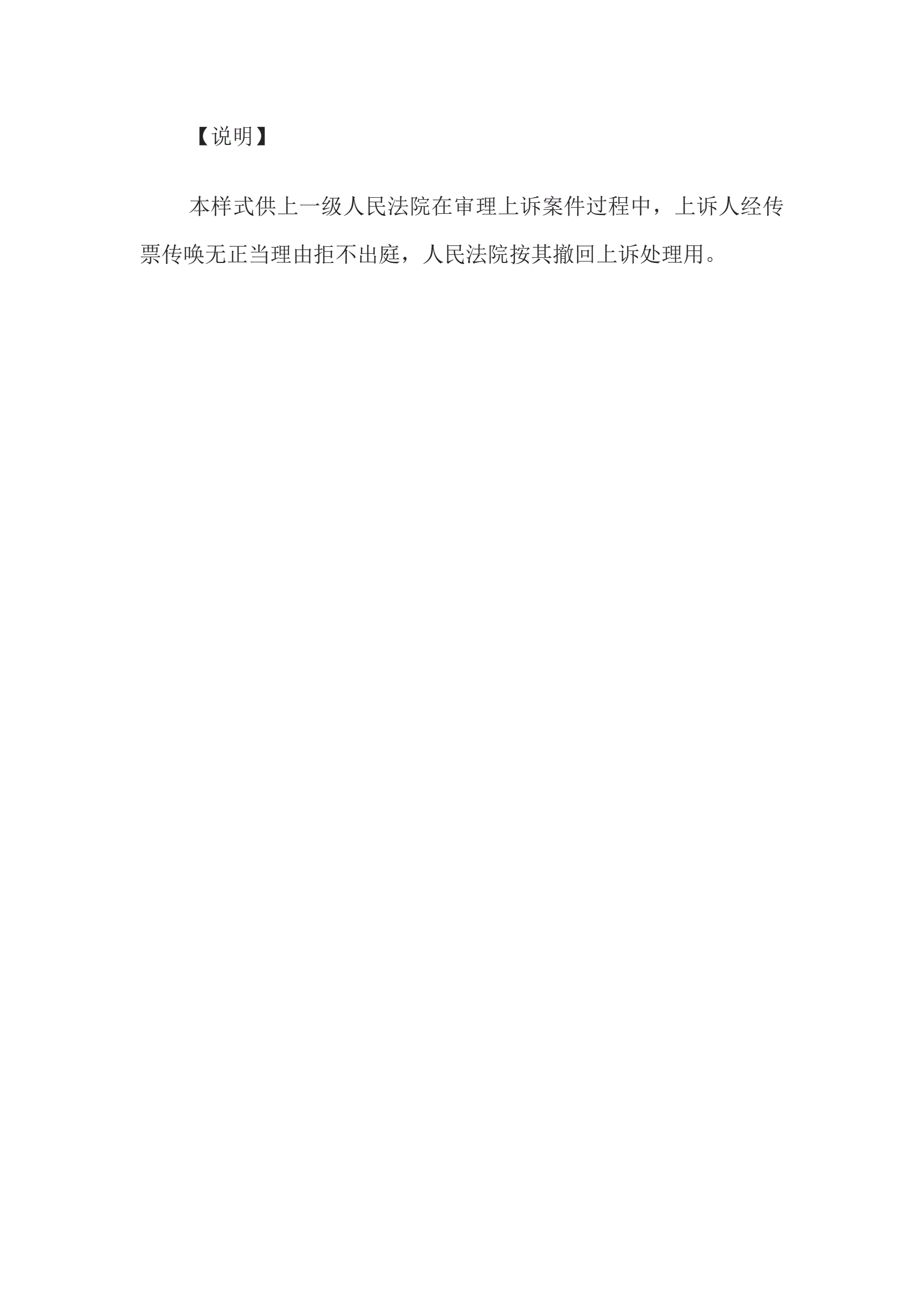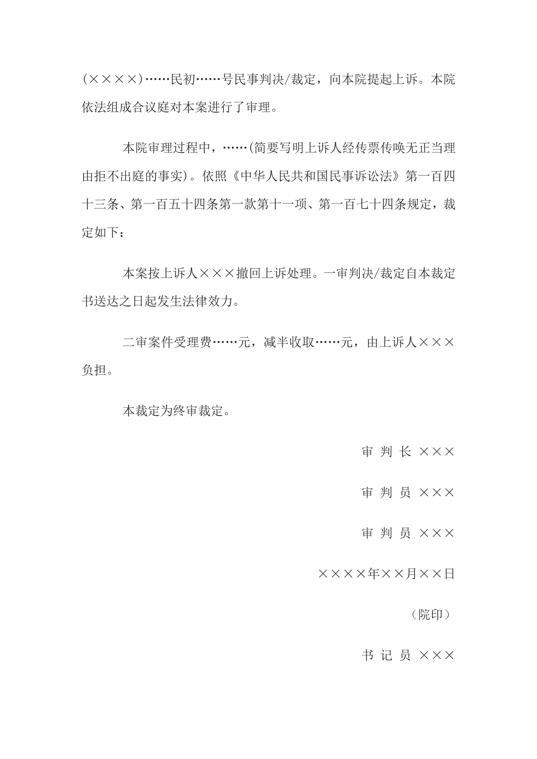 >民事裁定书(不参加二审诉讼按撤回上诉处理用)