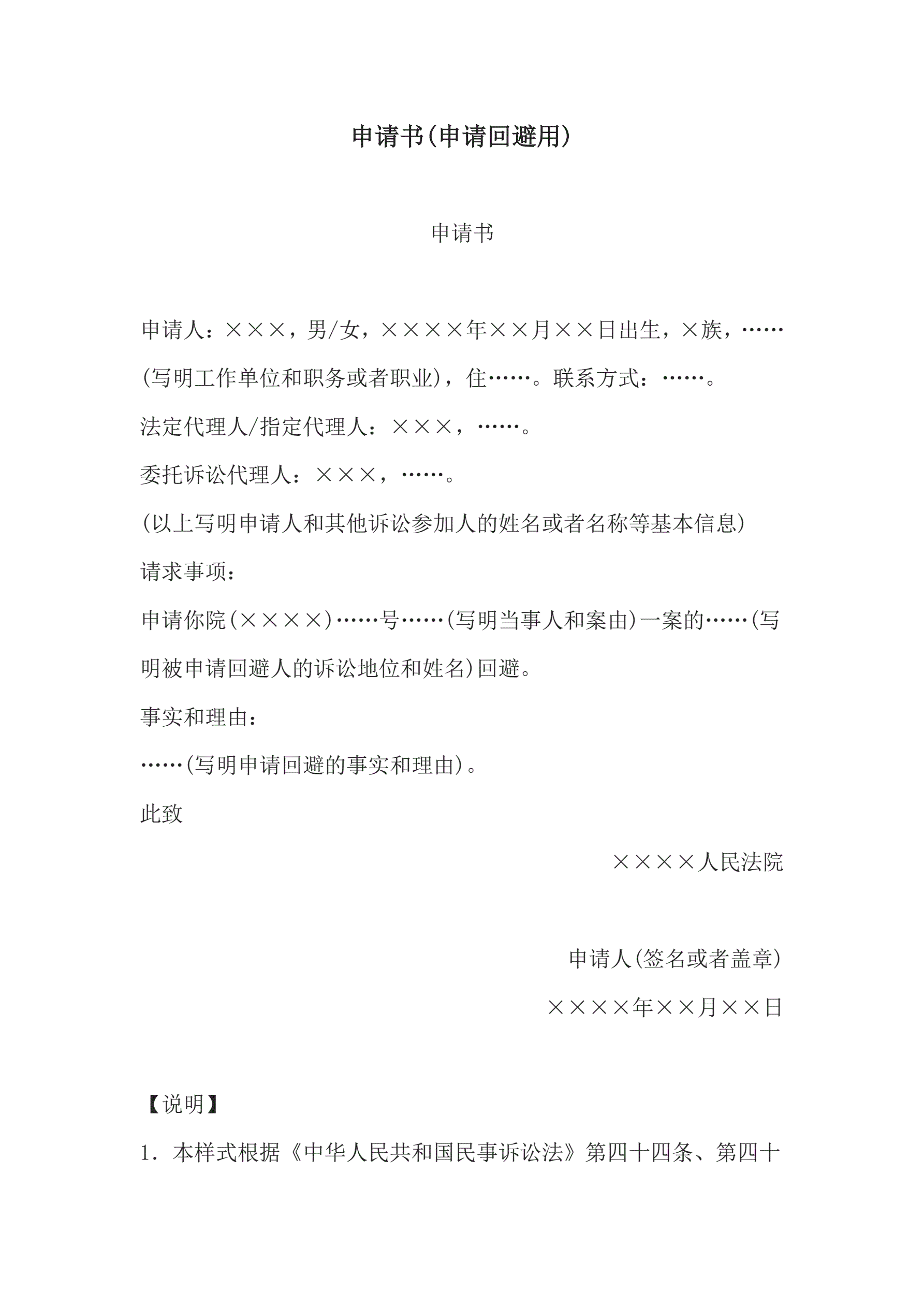 >申请书(申请回避用)