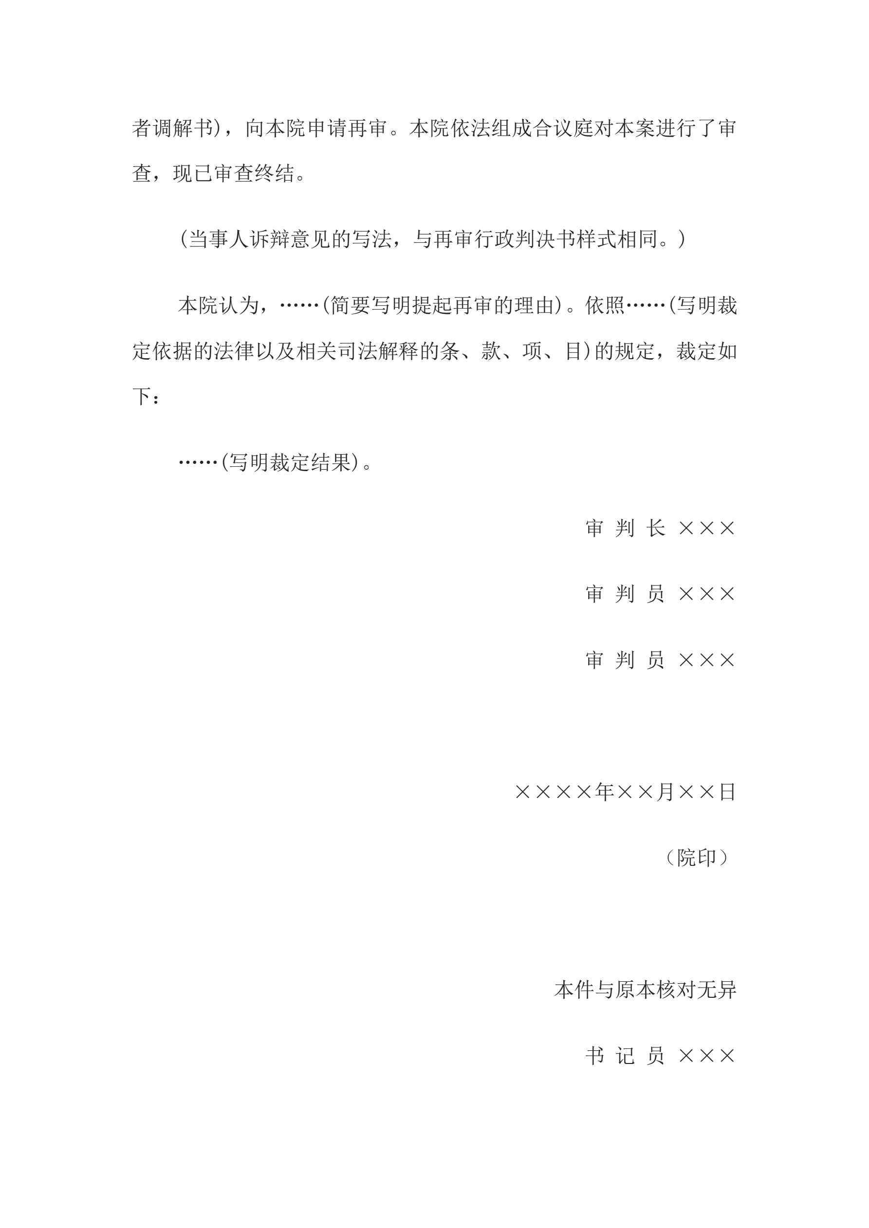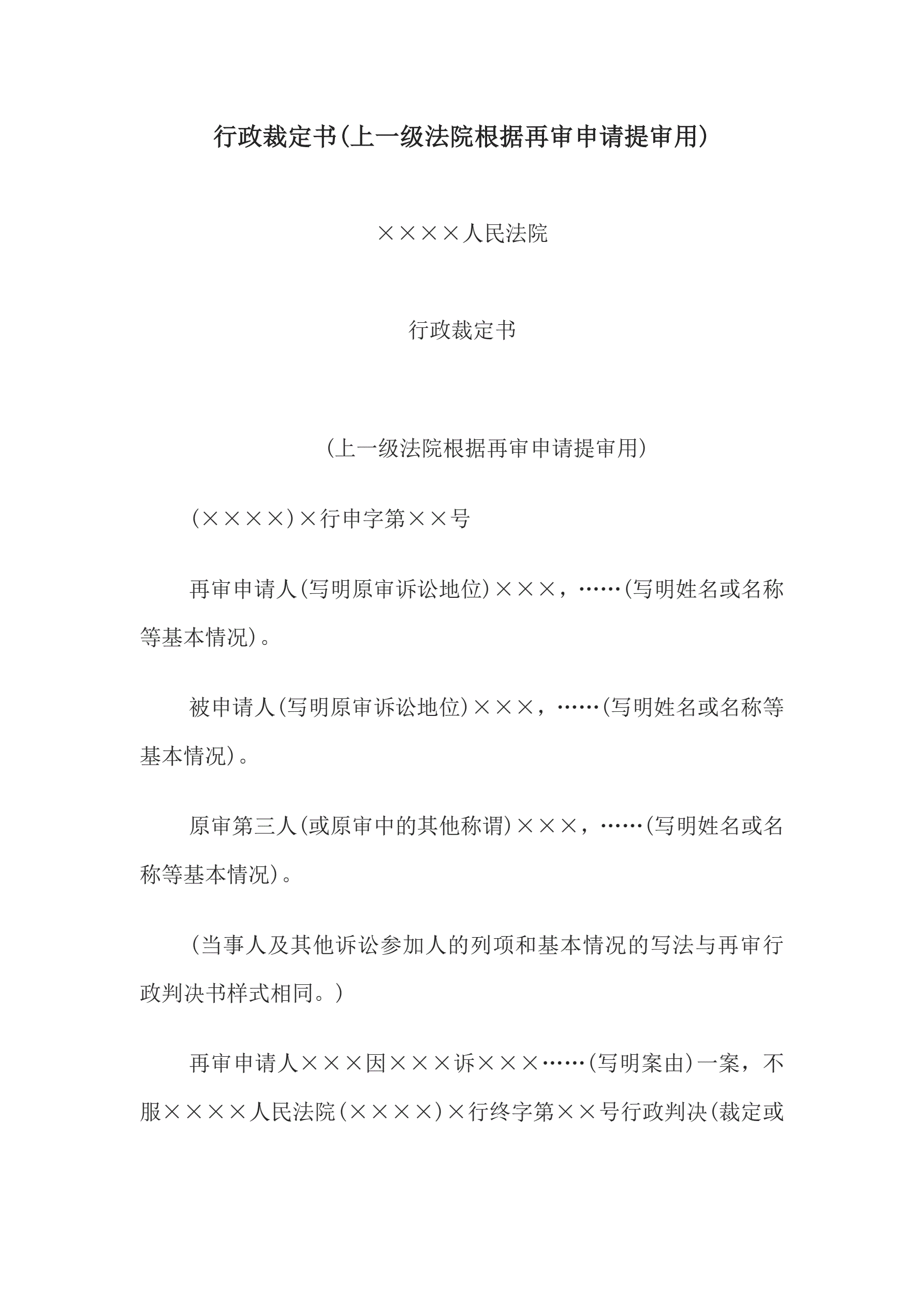 >行政裁定书(上一级法院根据再审申请提审用)