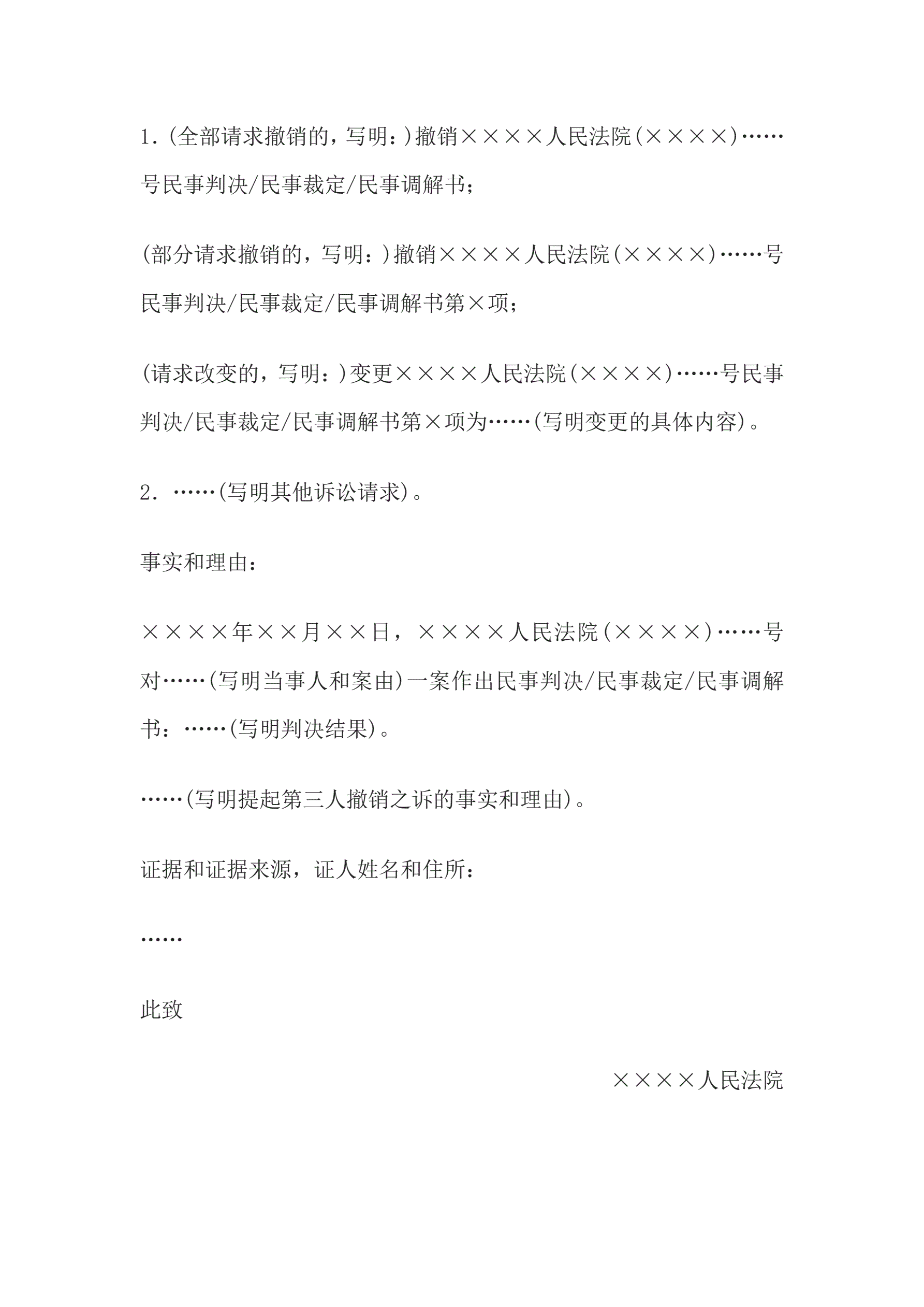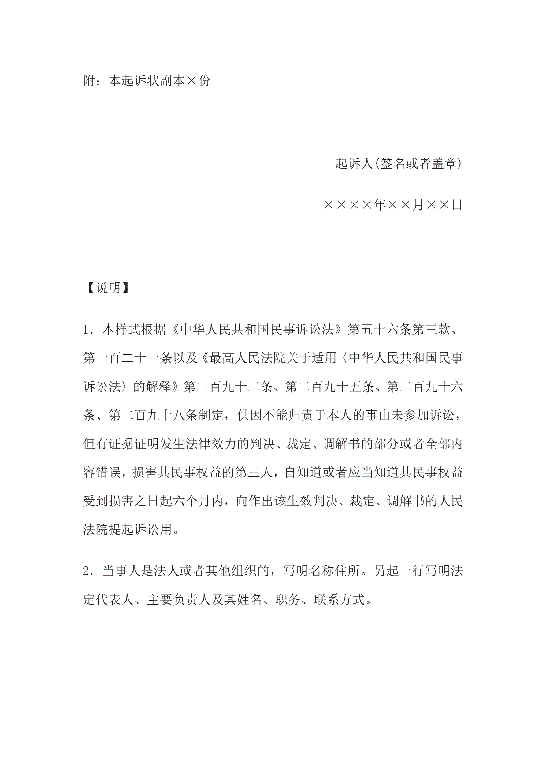 >民事起诉状(提起第三人撤销之诉用)