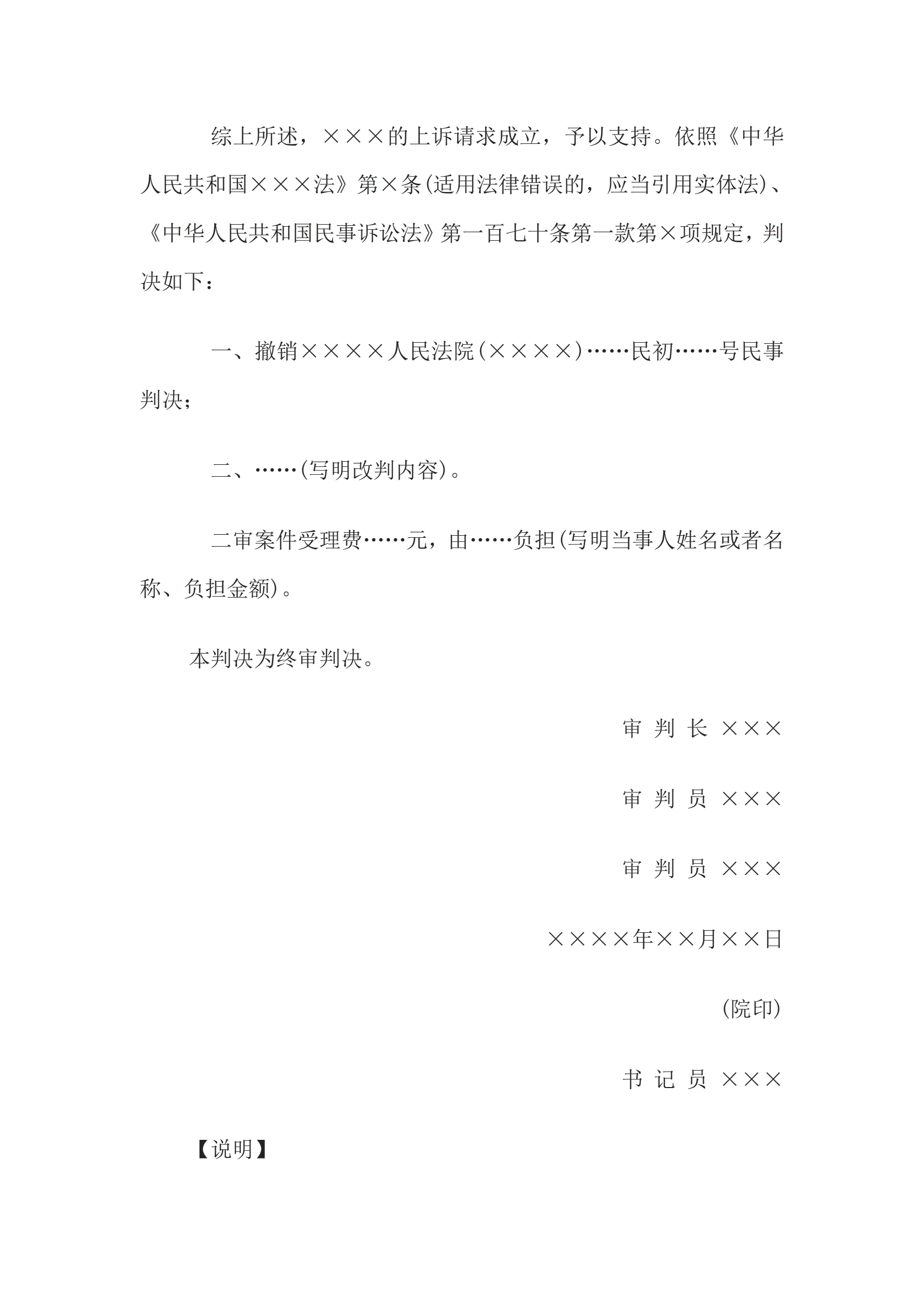 合同名称:民事判决书(二审改判用)