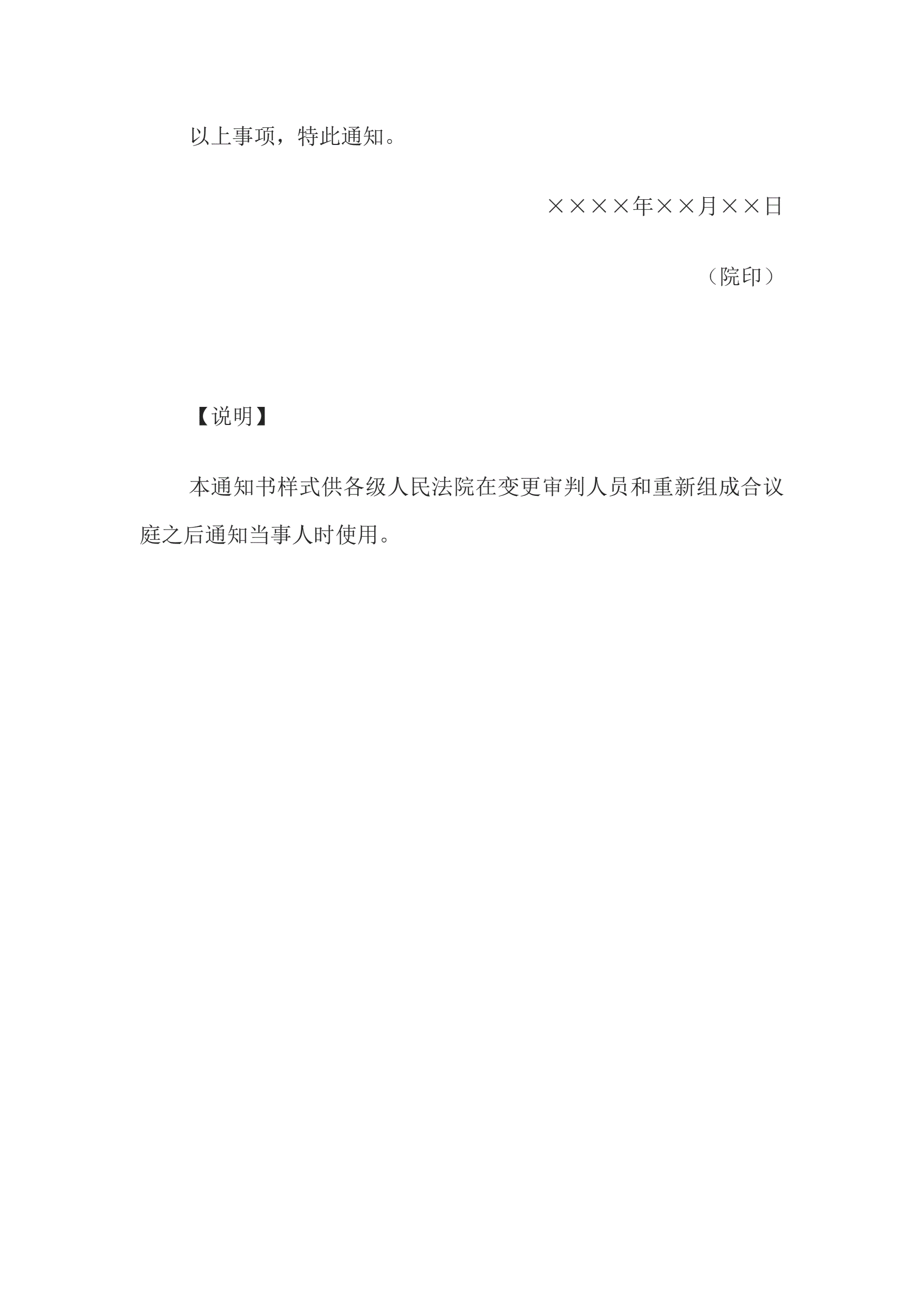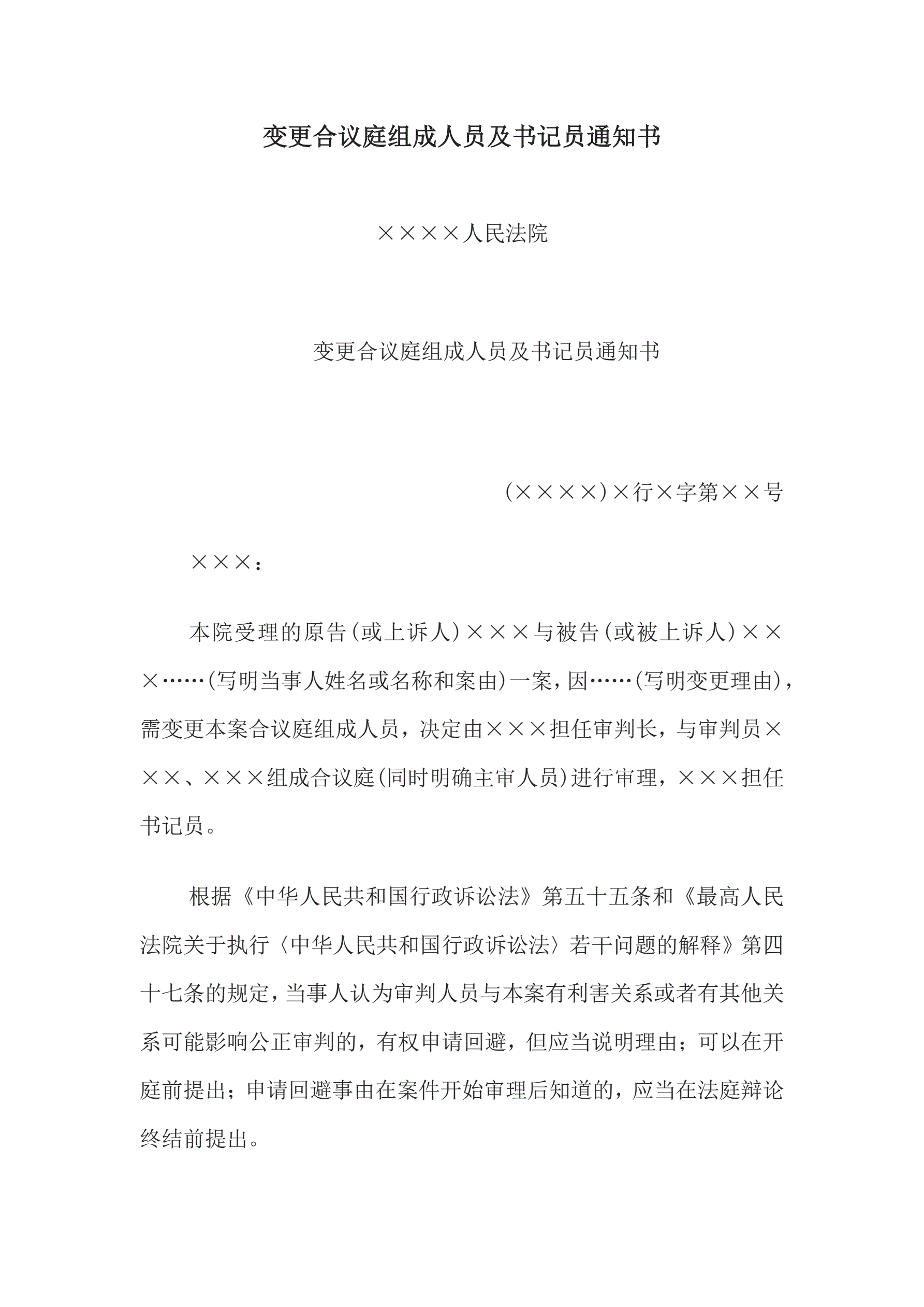 >变更合议庭组成人员及书记员通知书