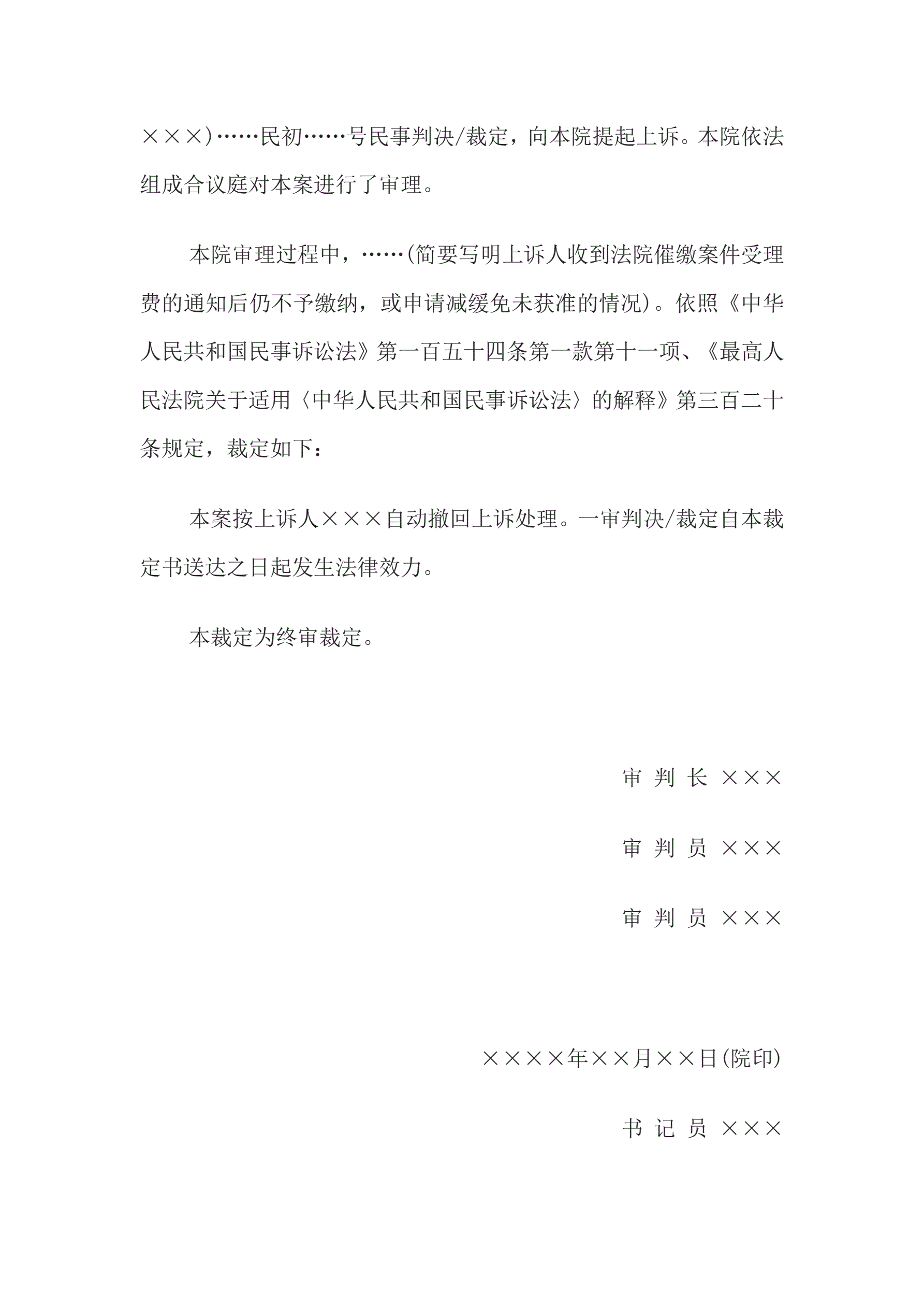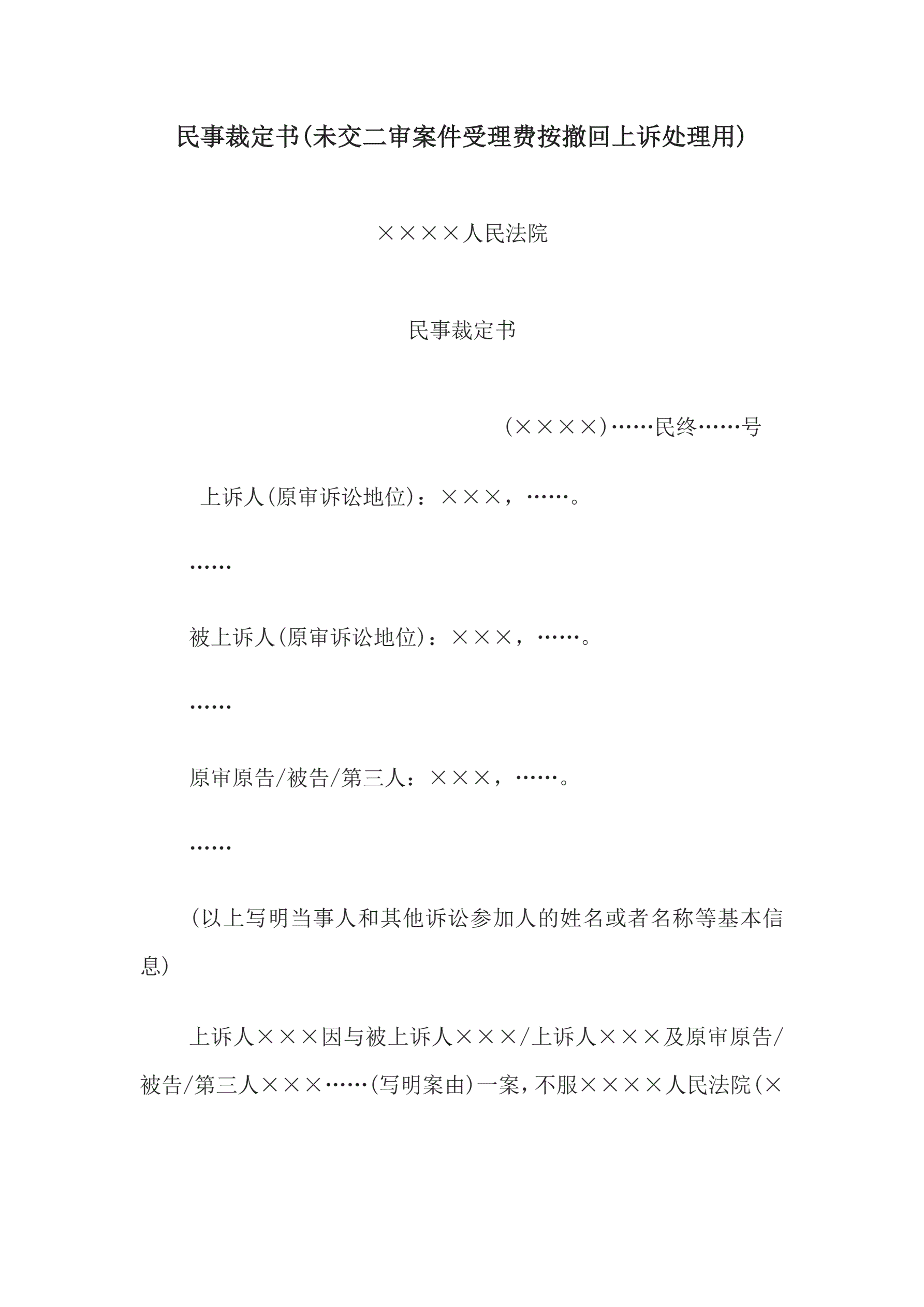 >民事裁定书(未交二审案件受理费按撤回上诉处理用)