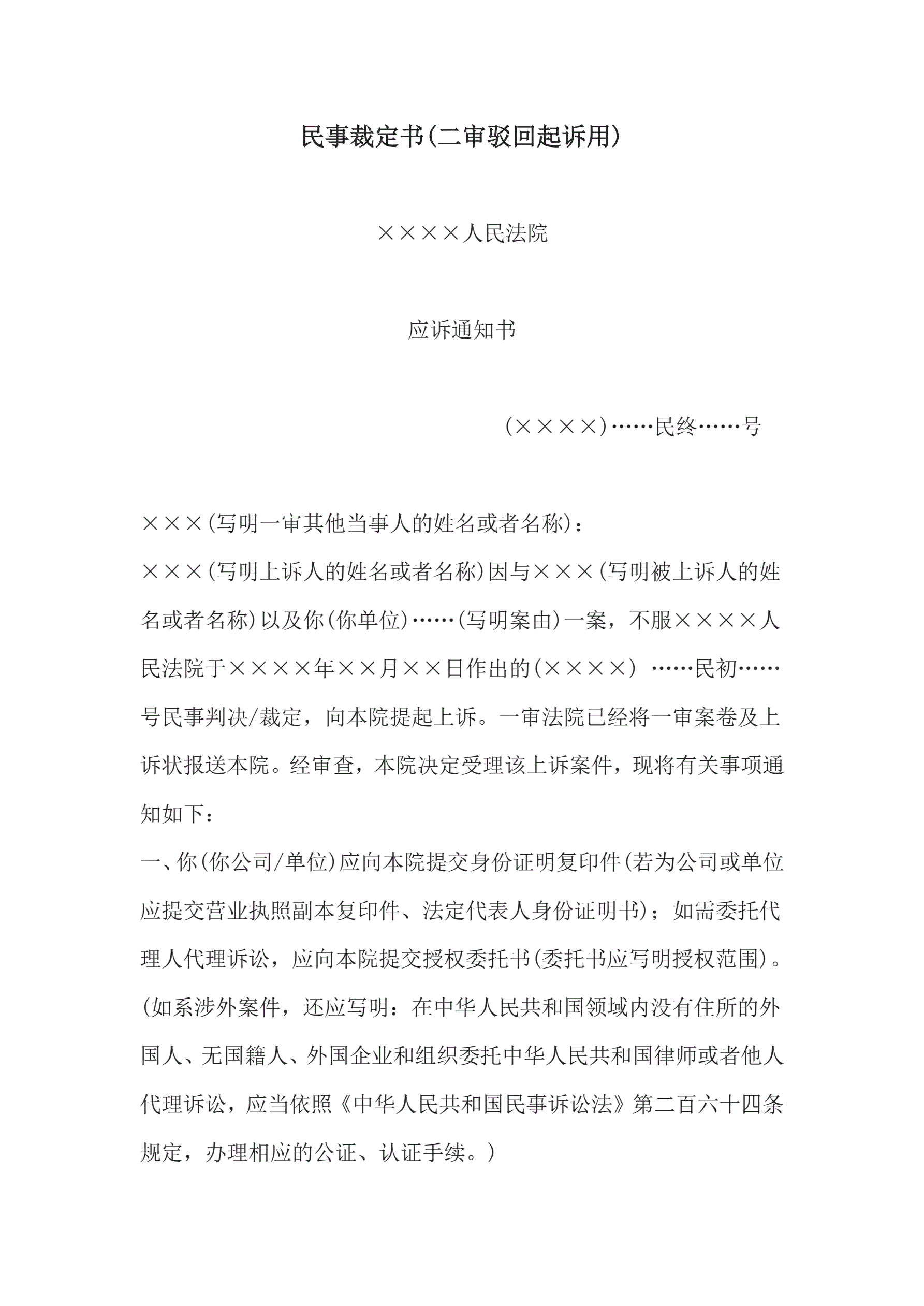>民事裁定书(二审驳回起诉用)