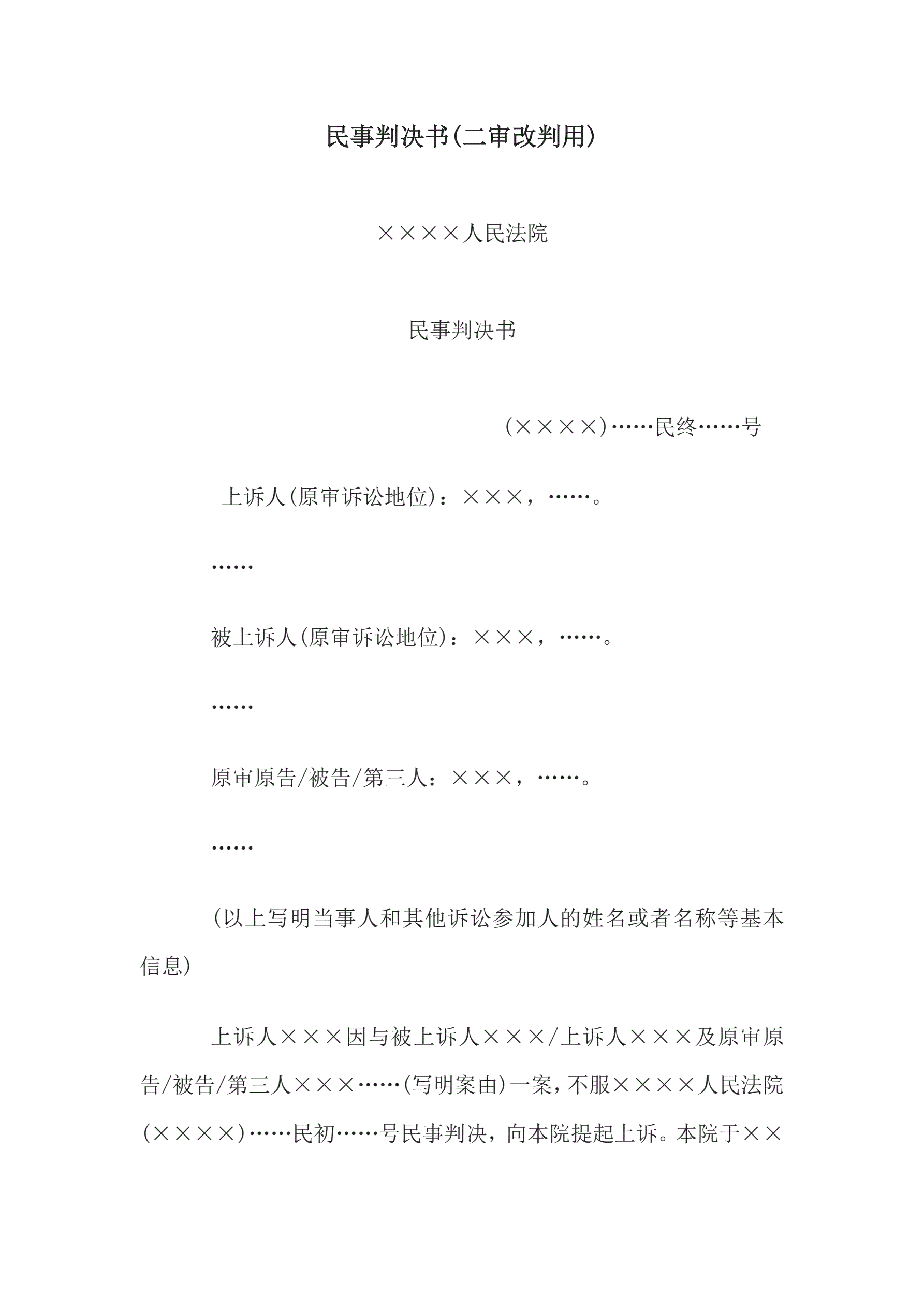 >民事判决书(二审改判用)