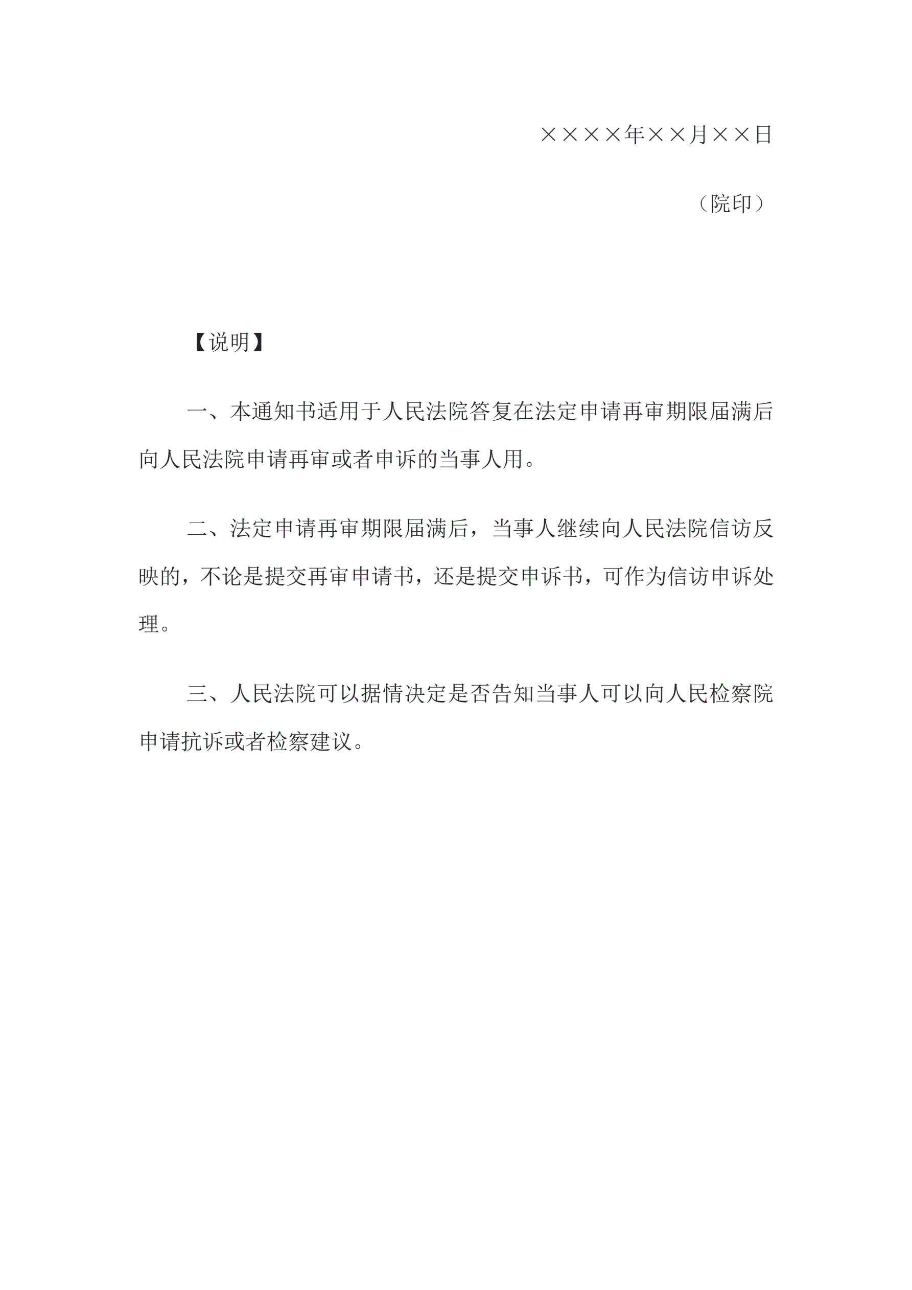 >驳回申诉通知书(当事人在法定期限届满后向人民法院申诉用)