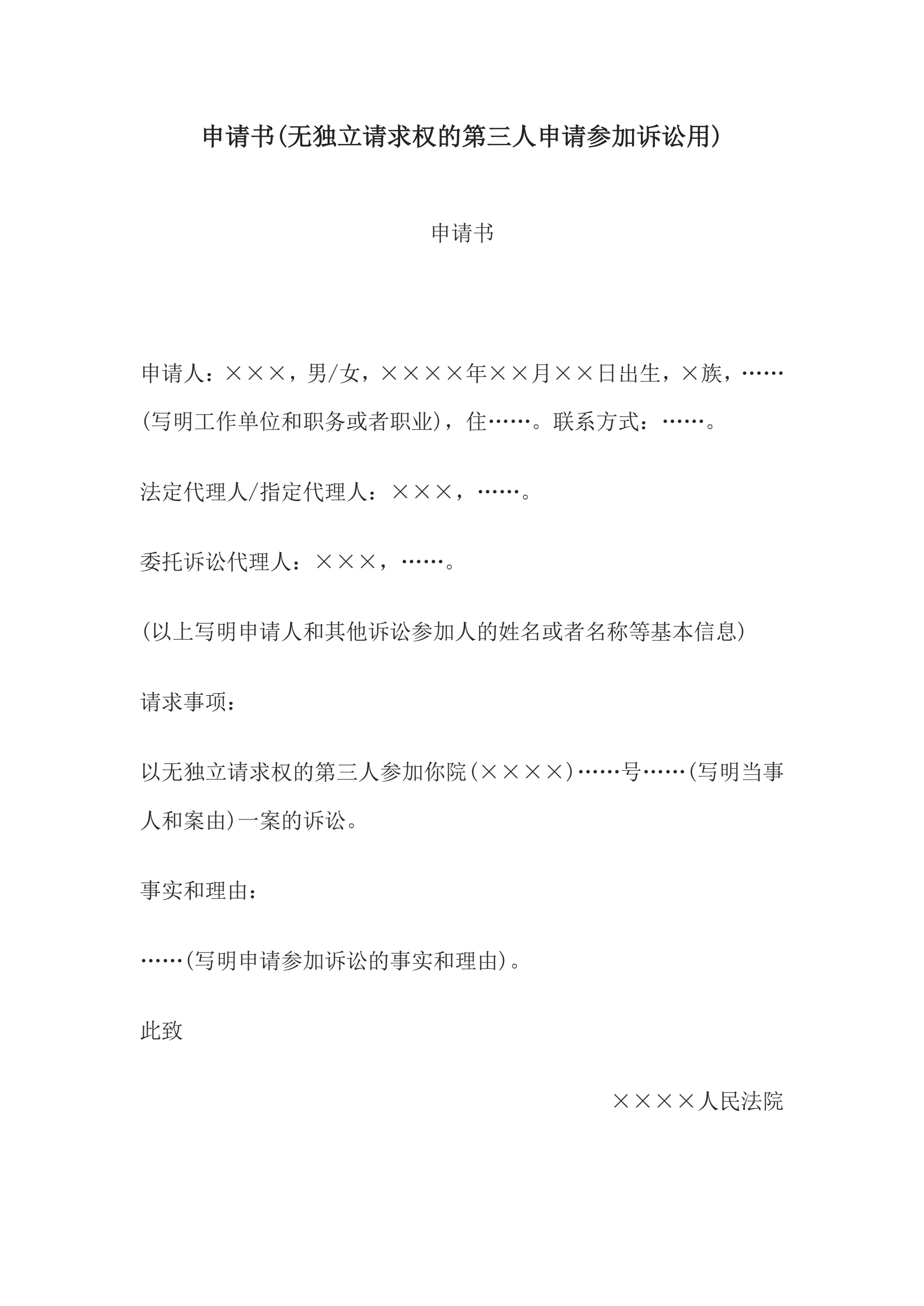 合同名称:申请书(无独立请求权的第三人申请参加诉讼用)