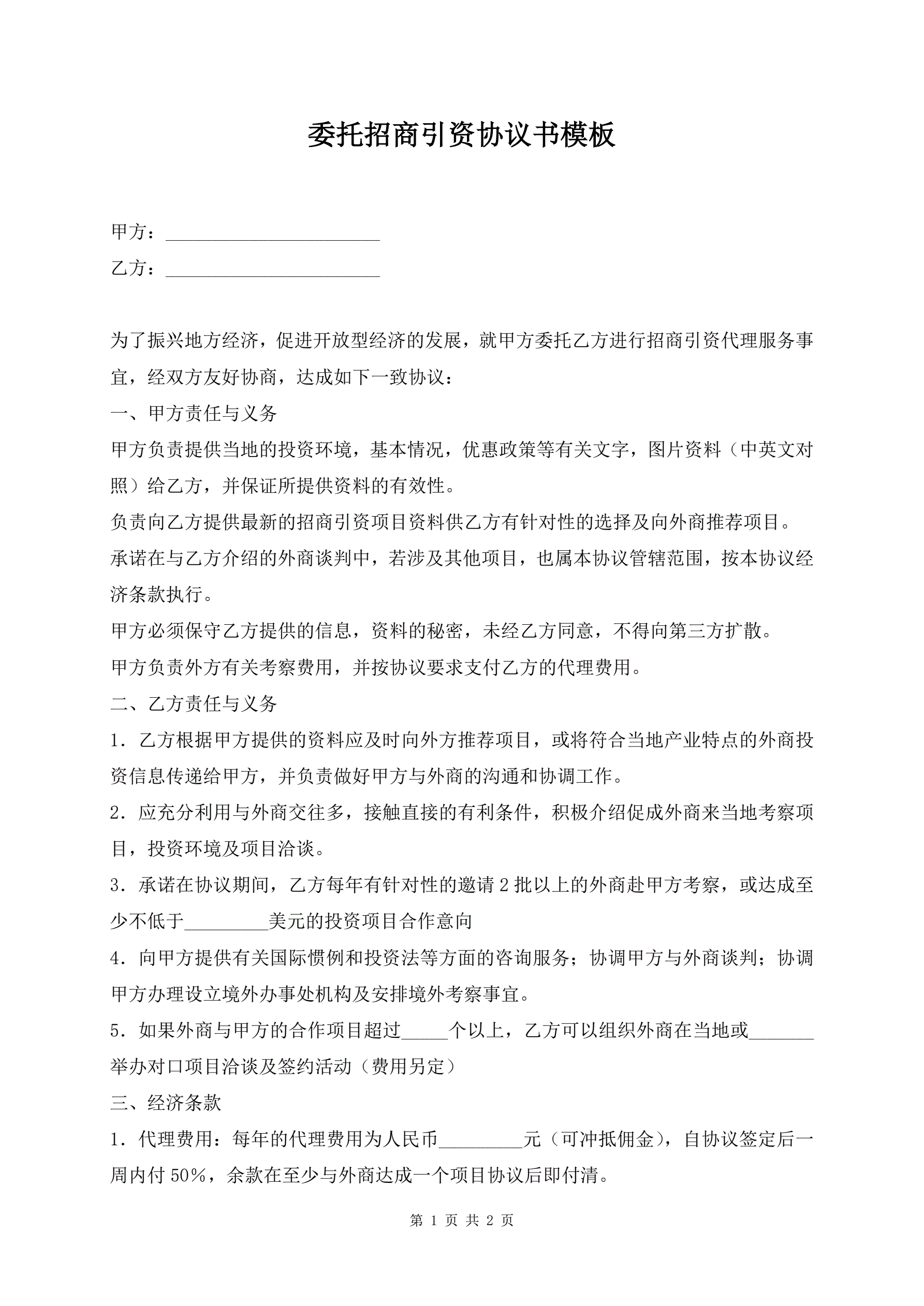 委托招商引资协议书模板