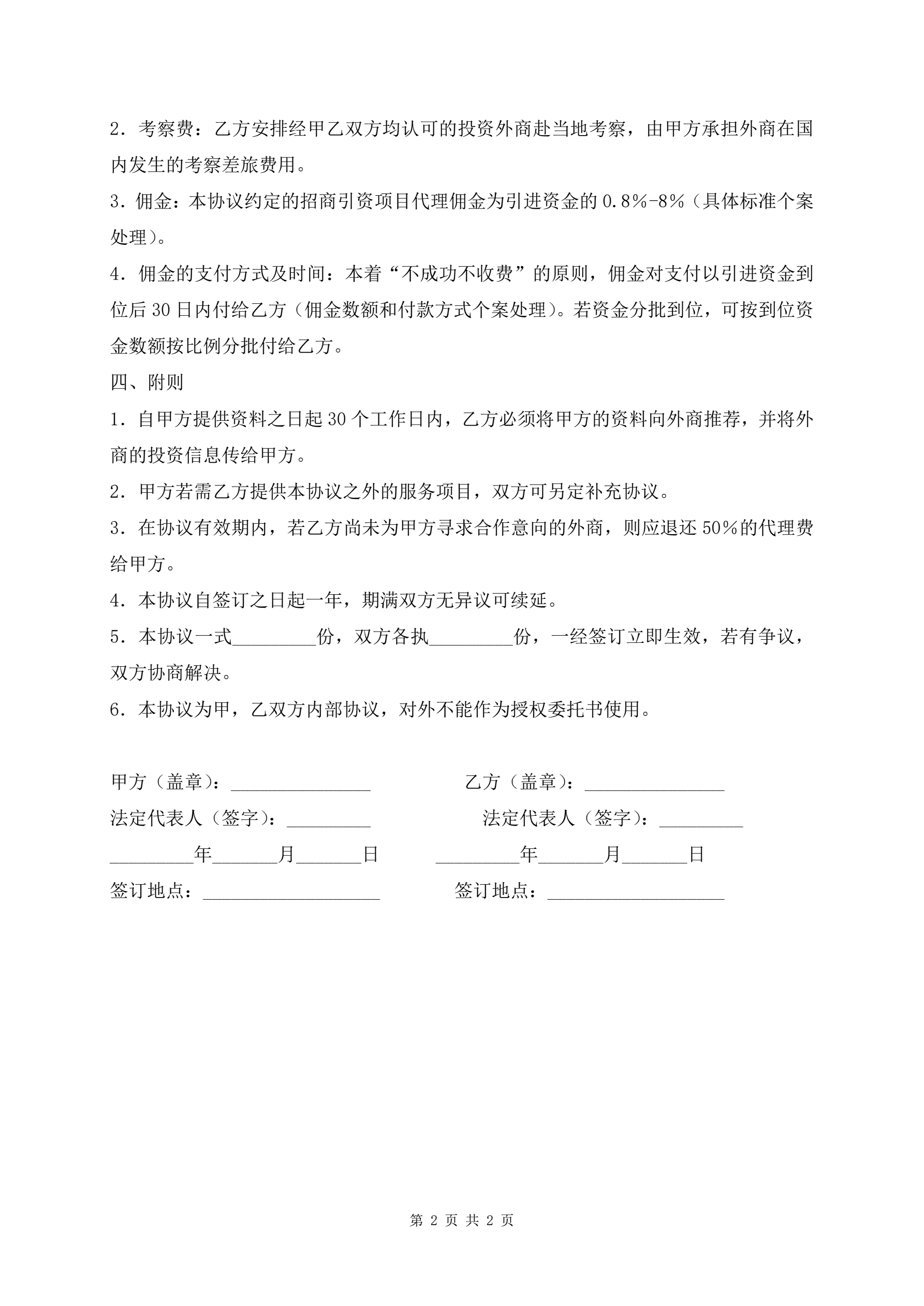 >委托招商引资协议书模板