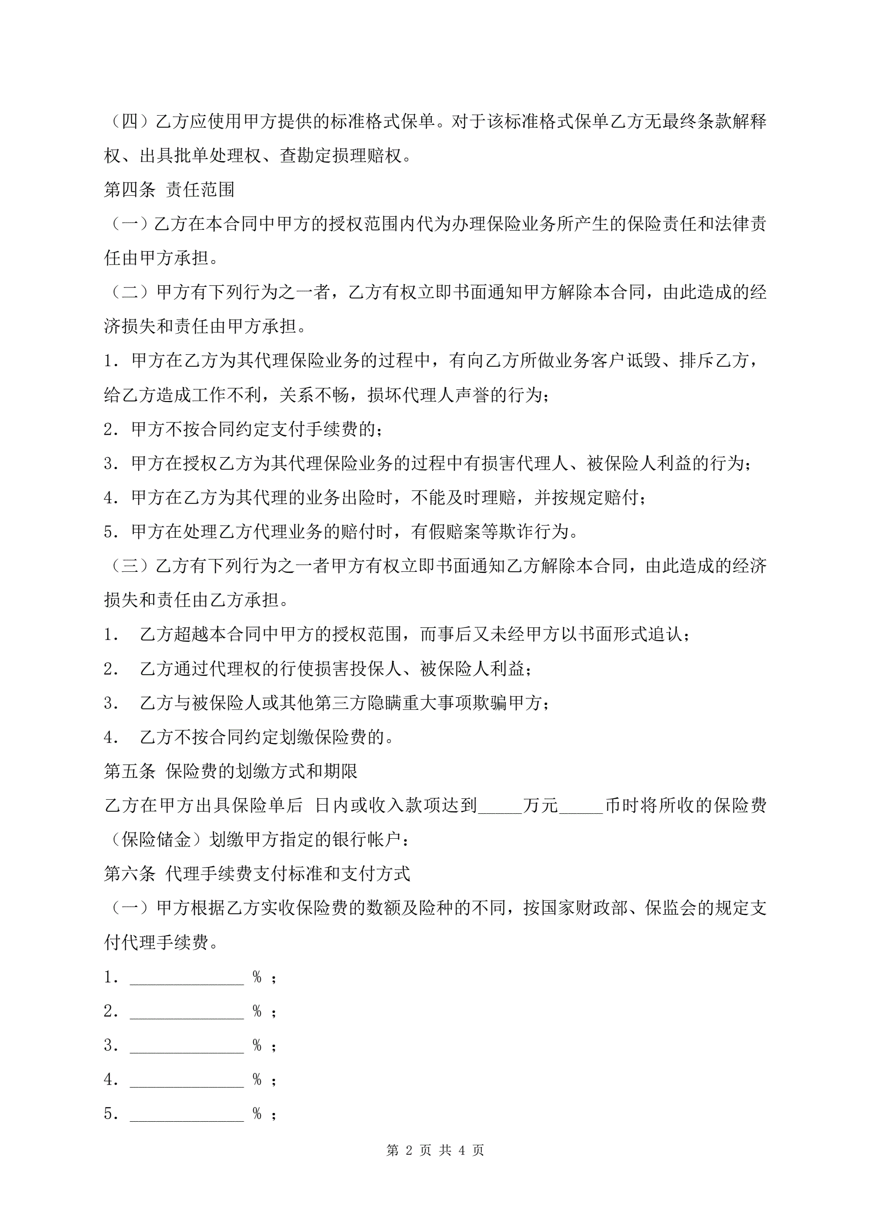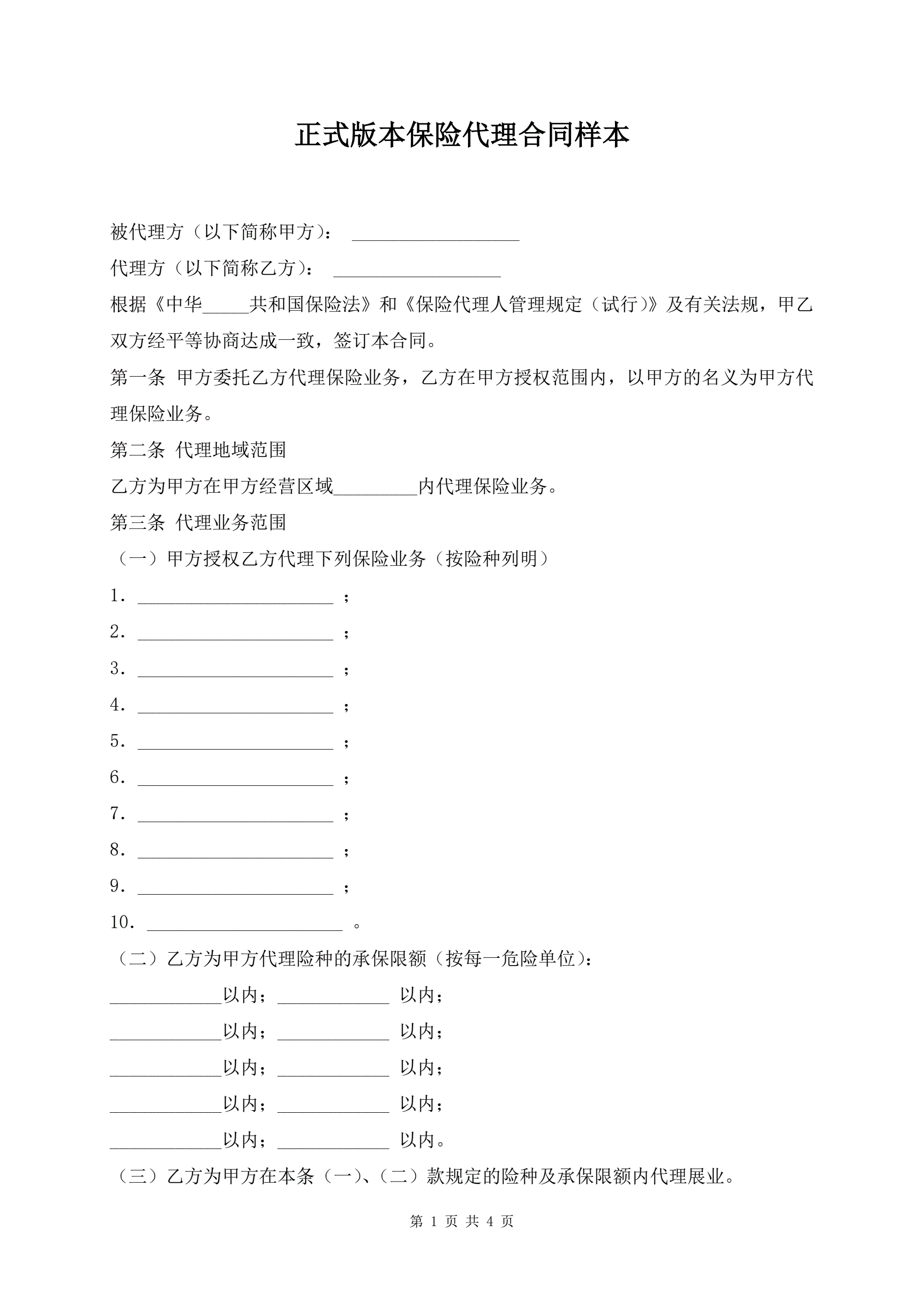 正式版本保险代理合同样本