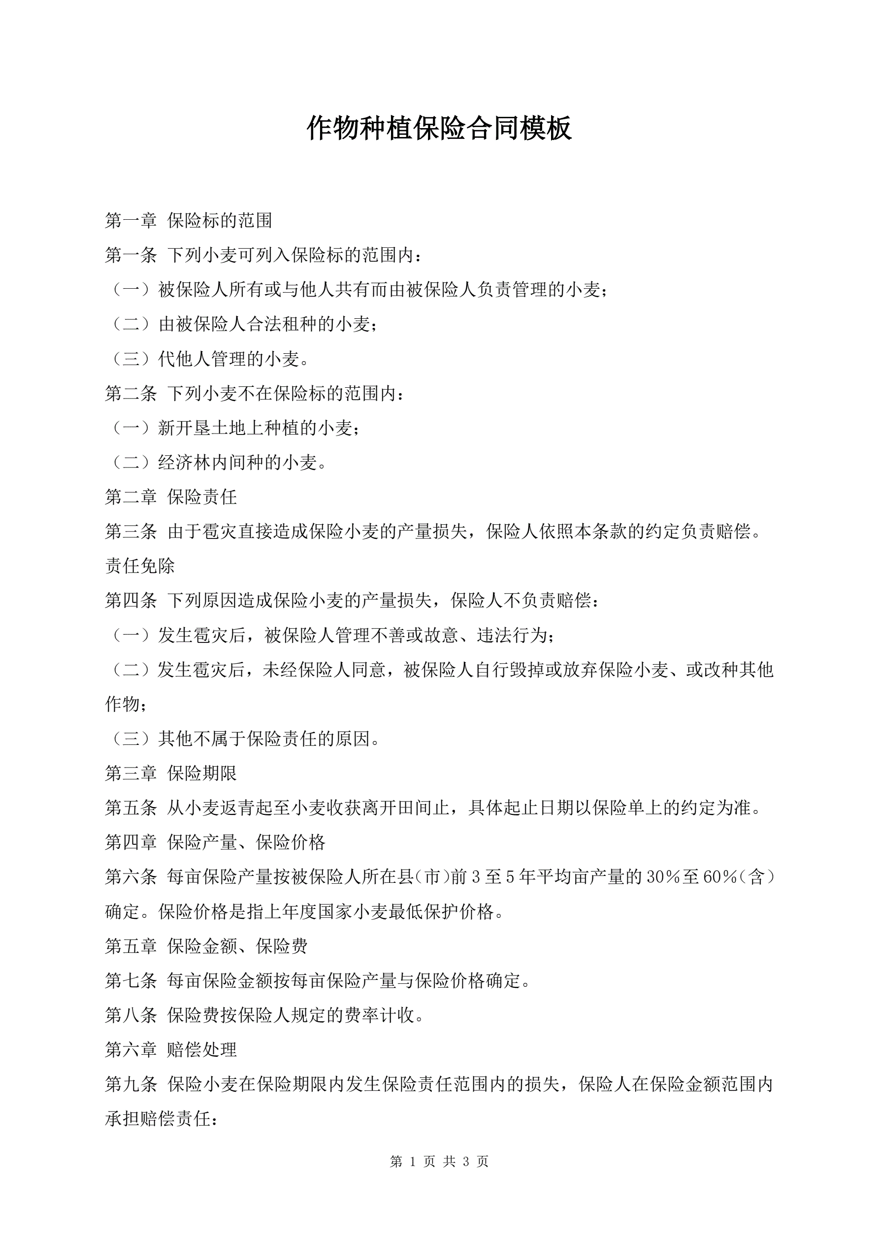 >作物种植保险合同模板