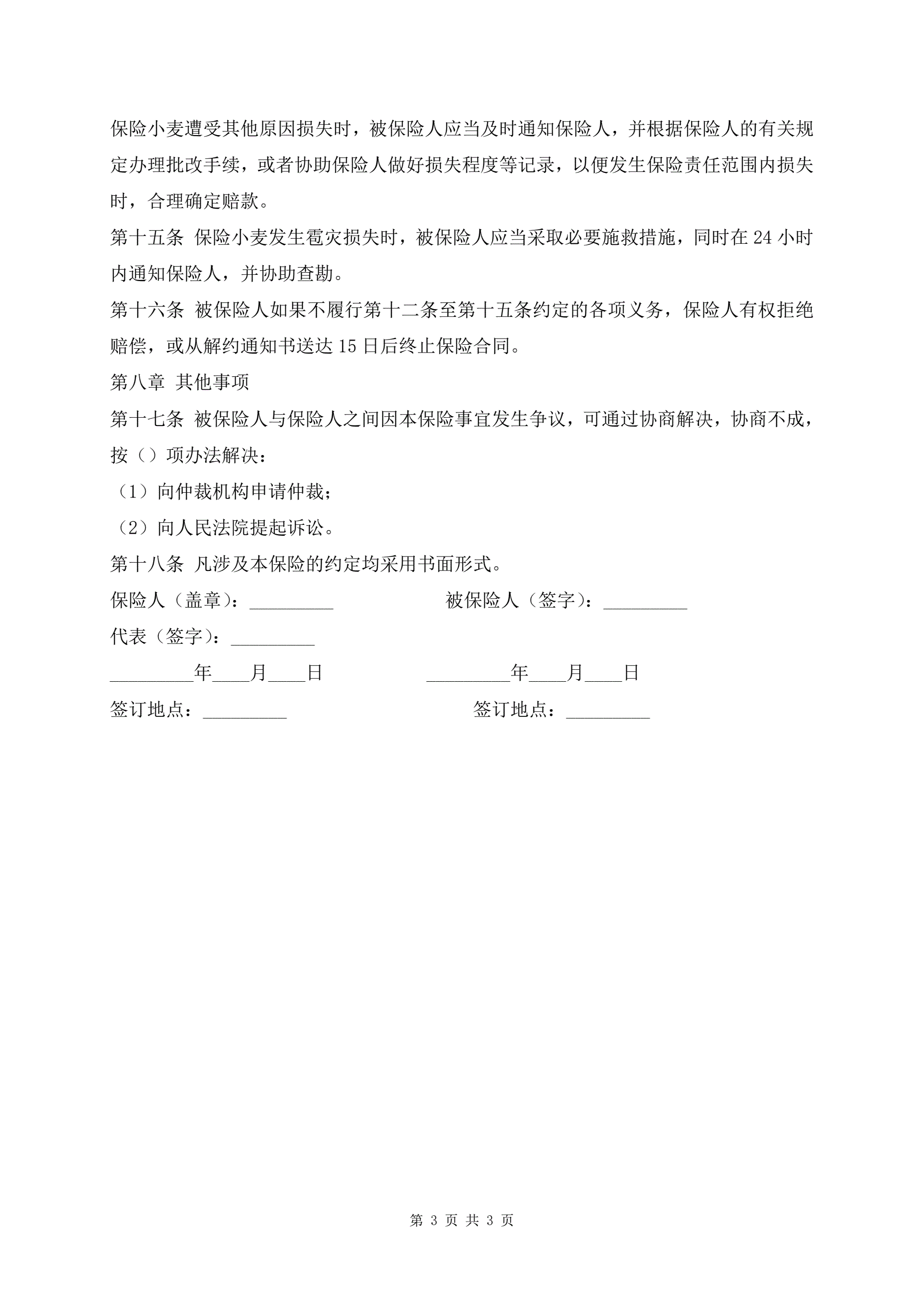 作物种植保险合同模板