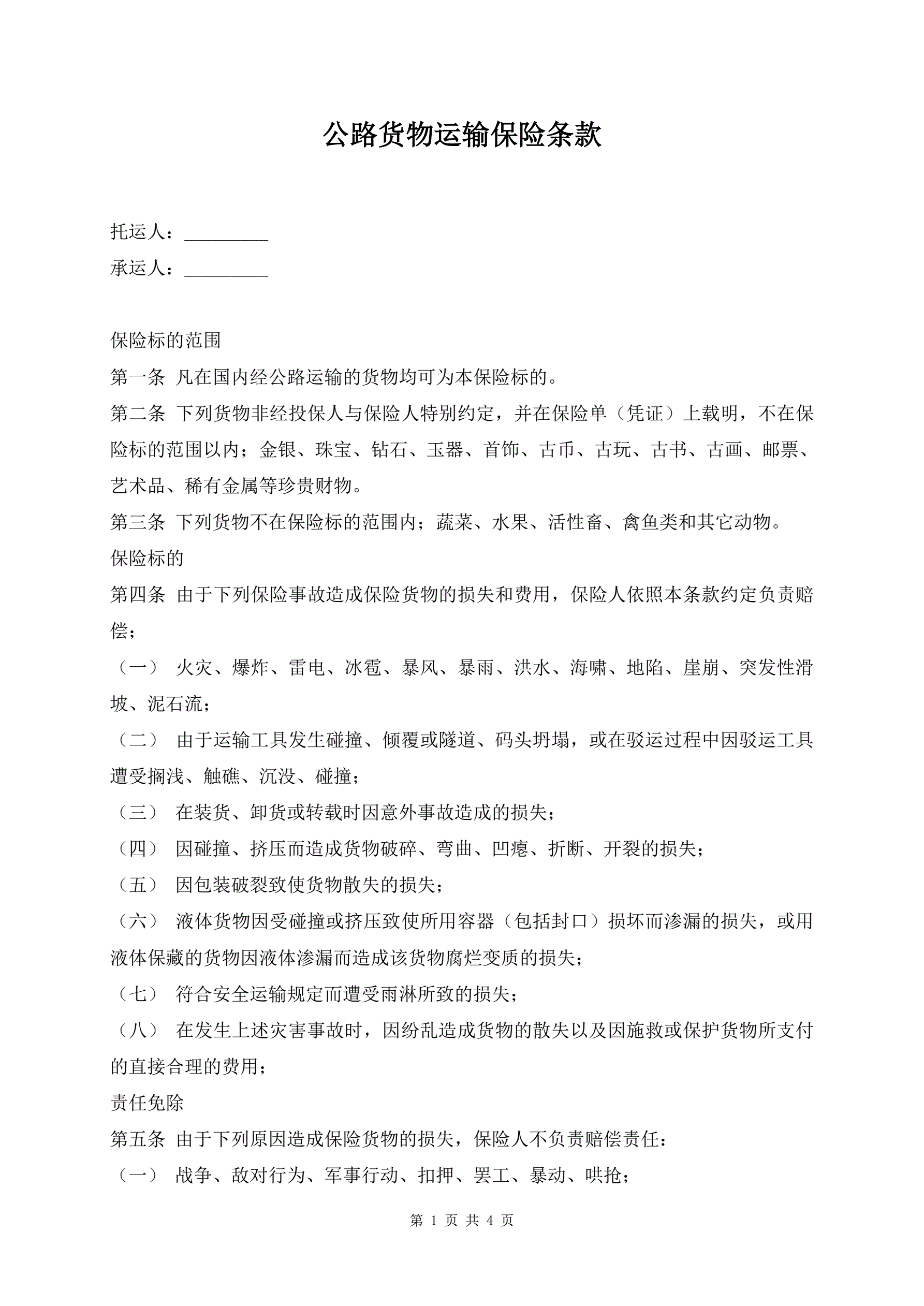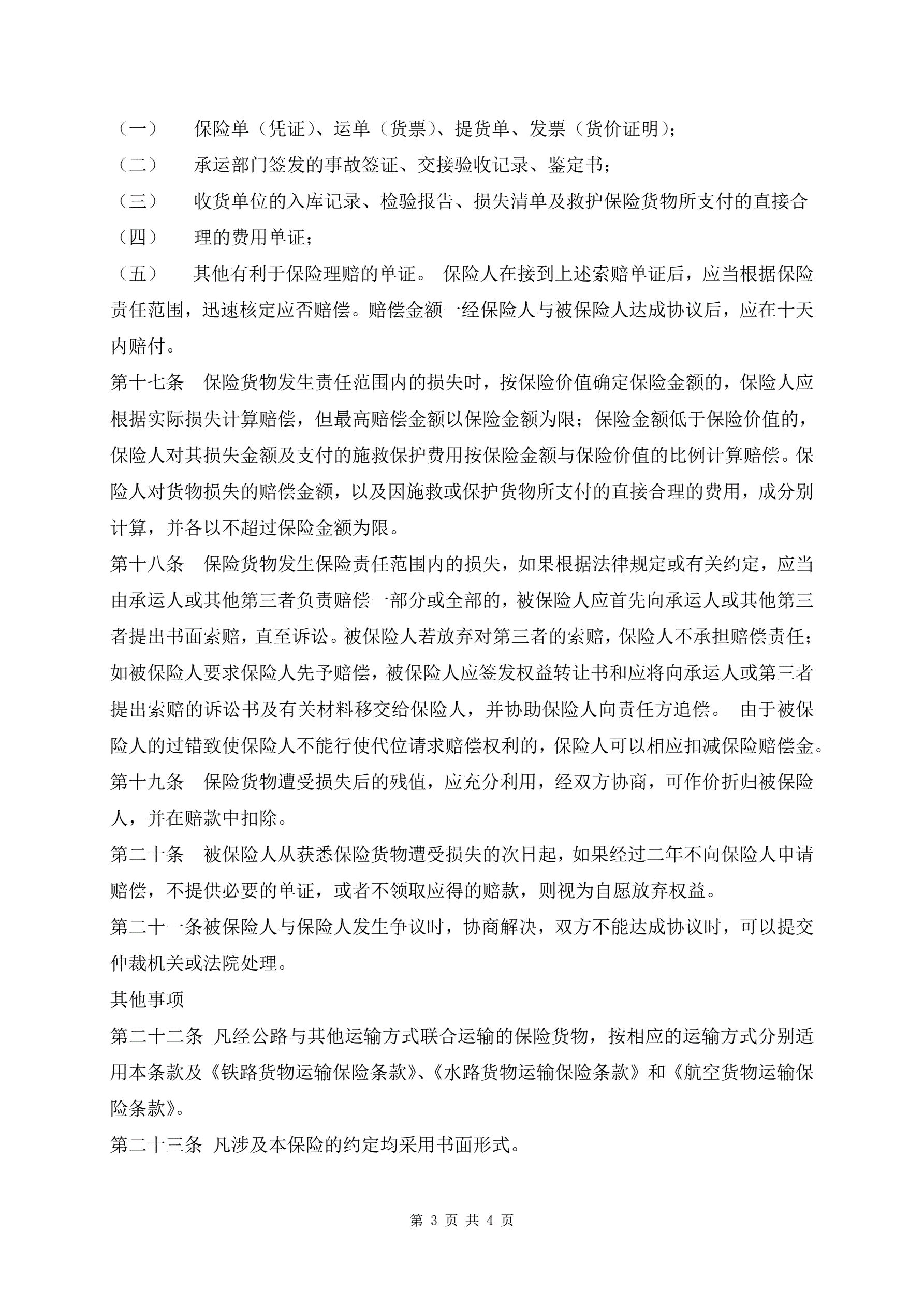 >公路货物运输保险条款