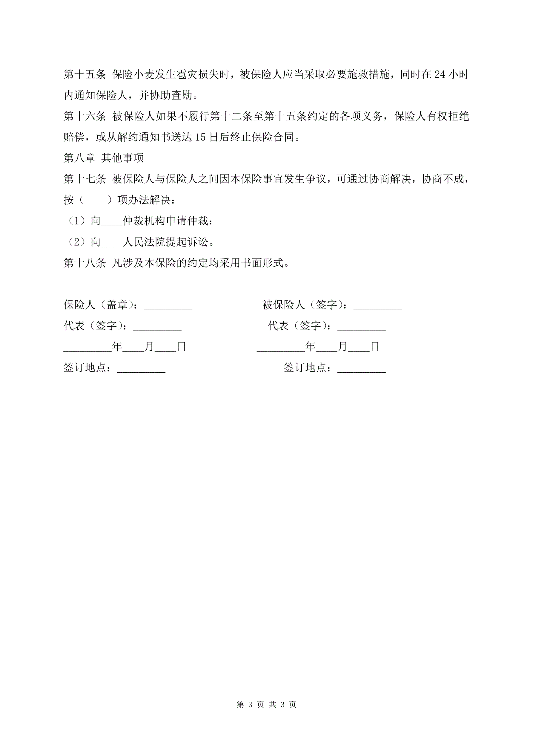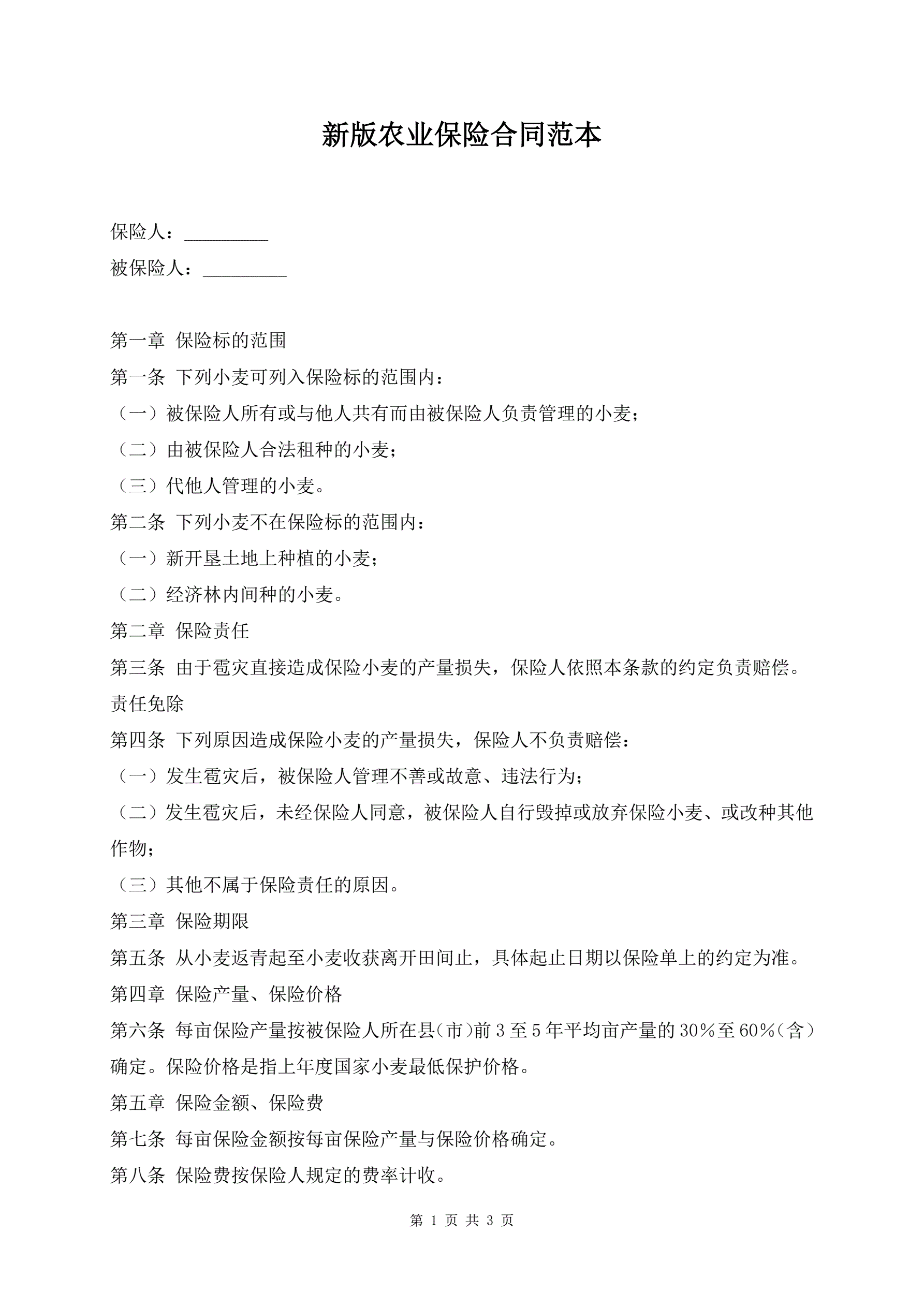 >新版农业保险合同范本