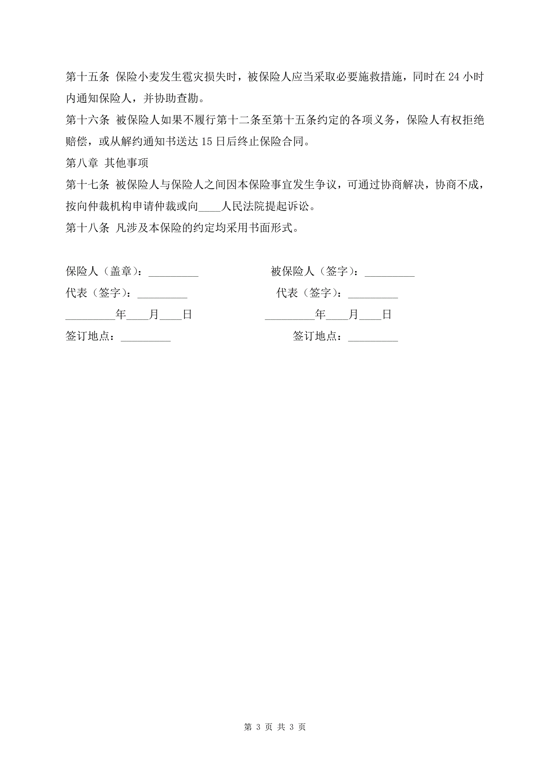 农业保险合同标准版