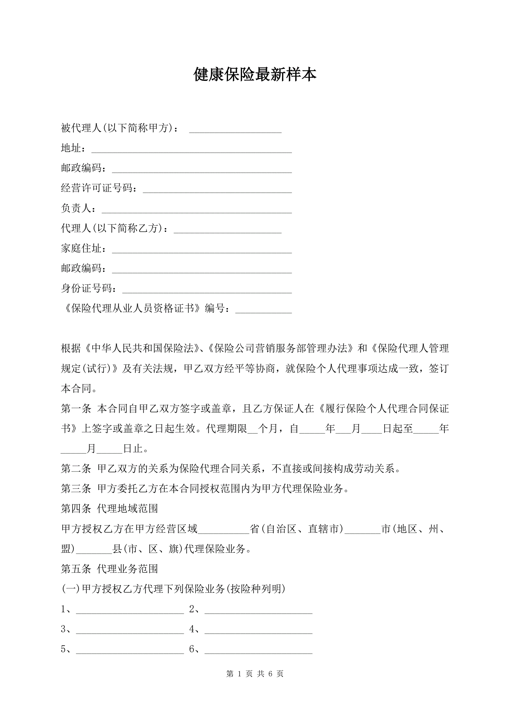 >健康保险最新样本