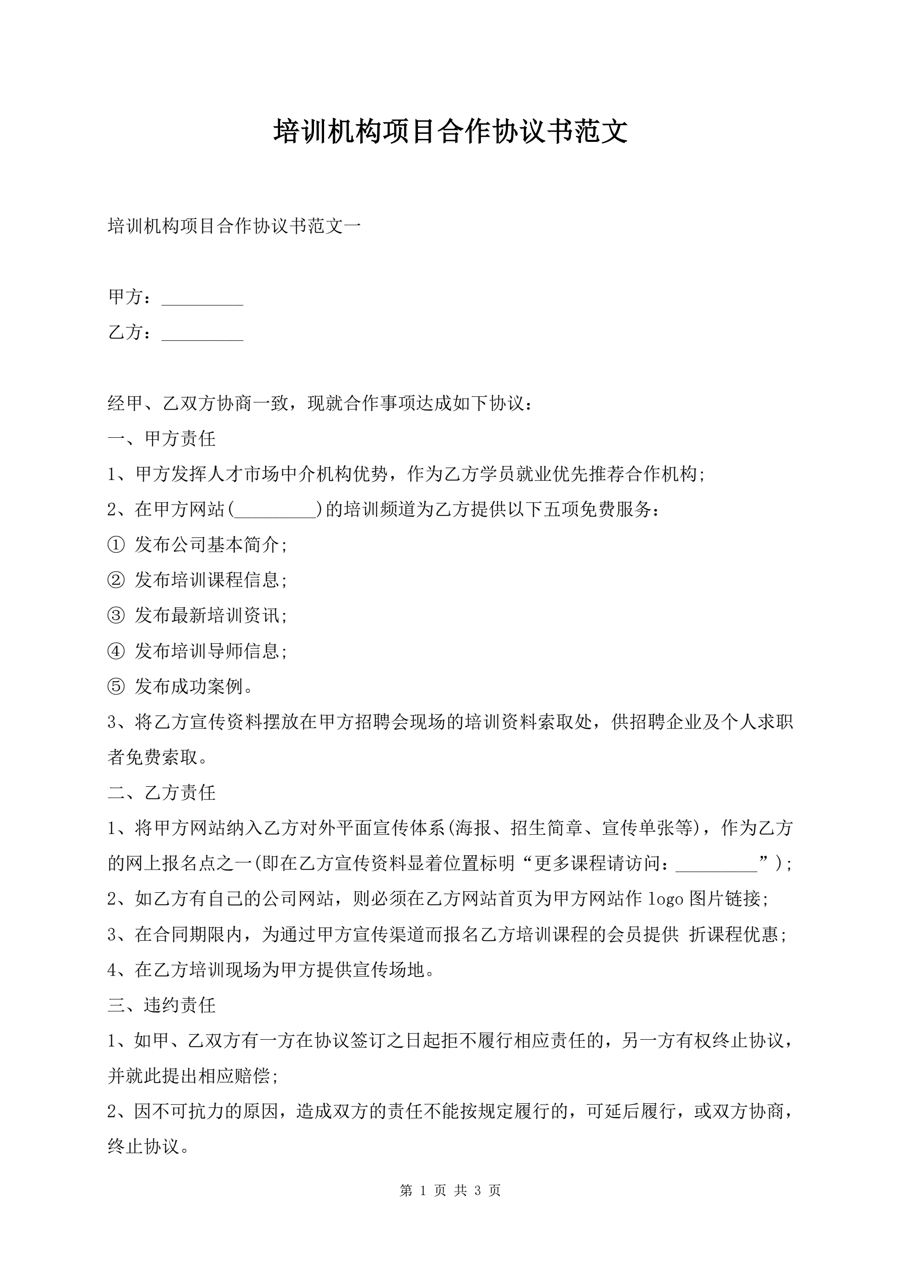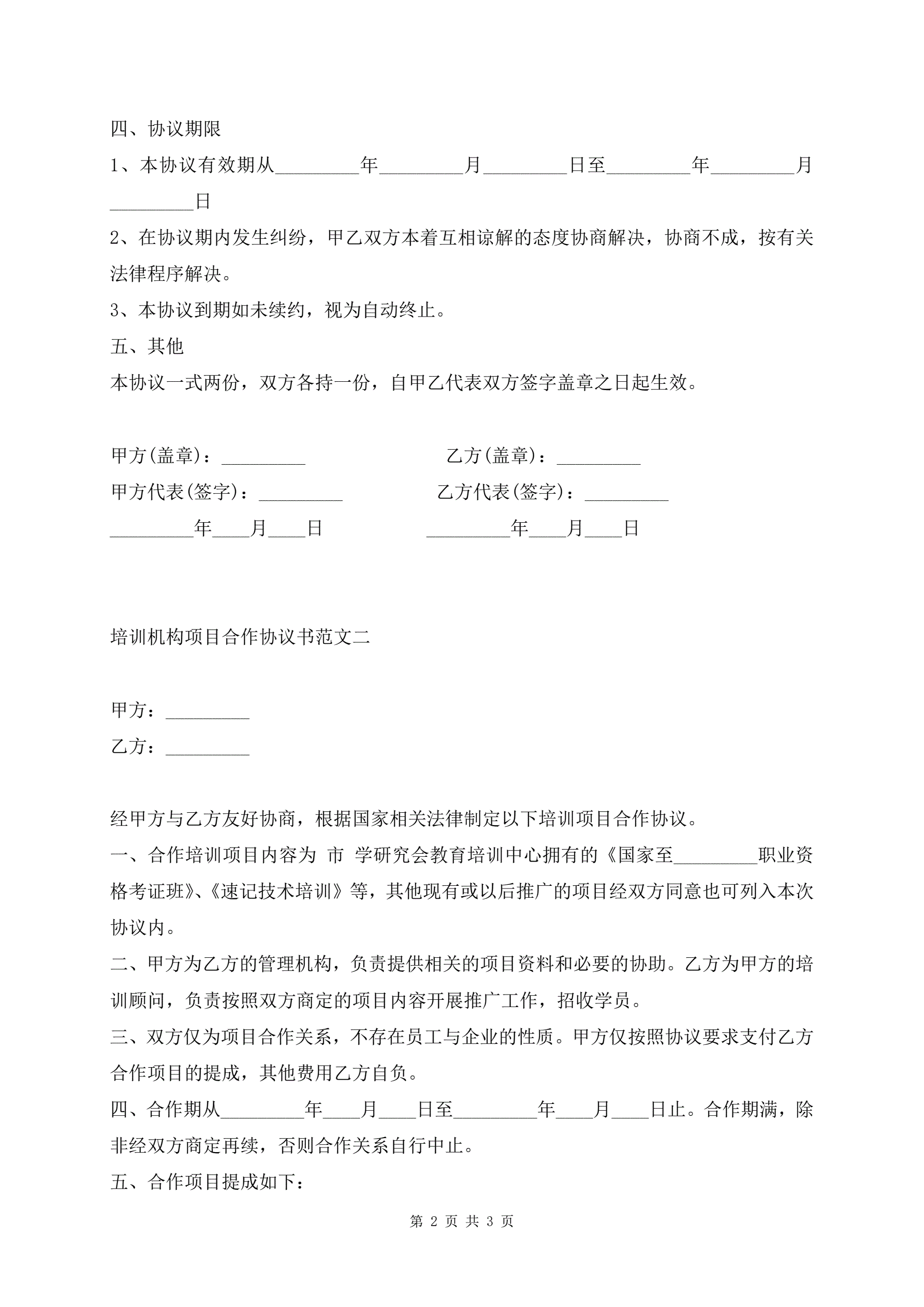>培训机构项目合作协议书范文