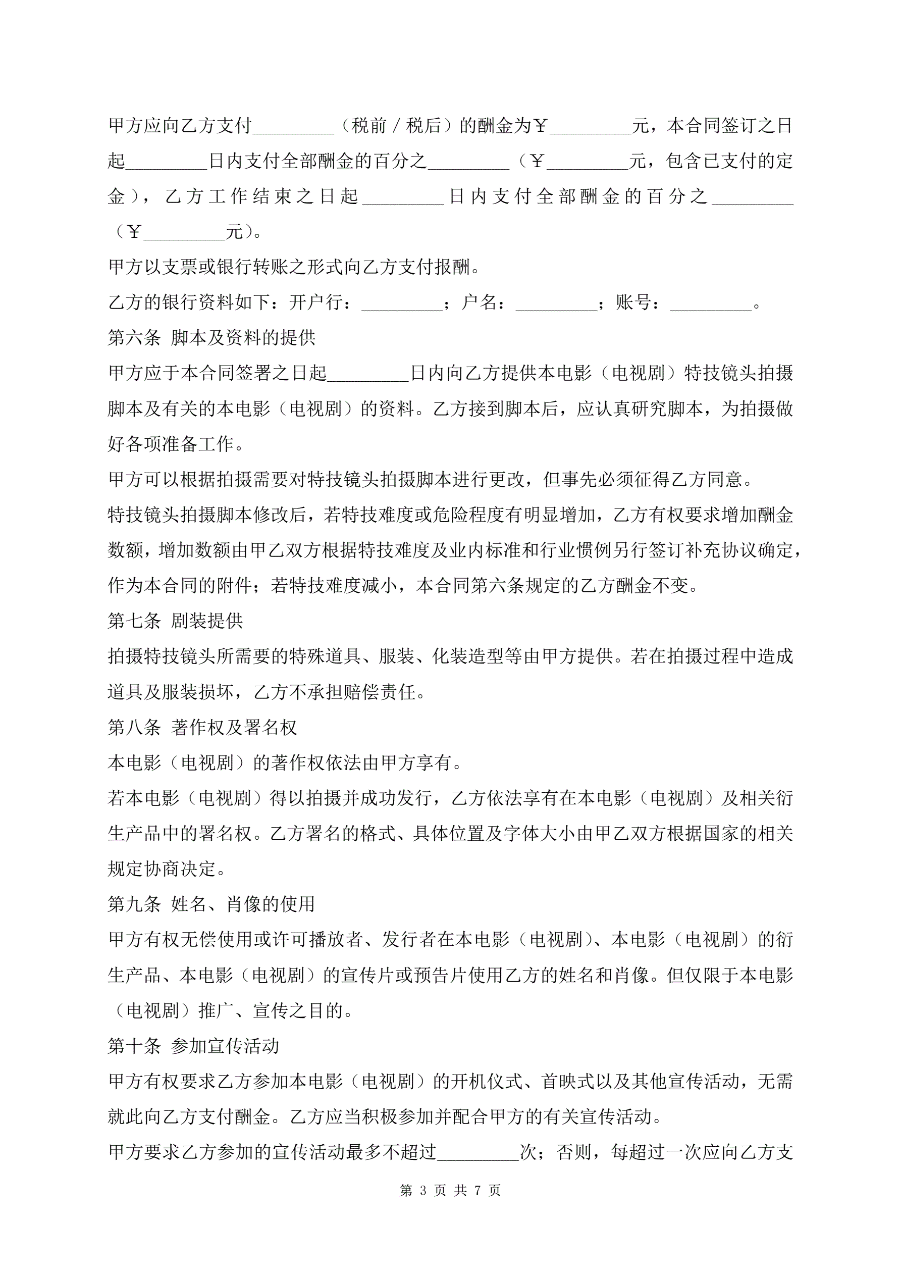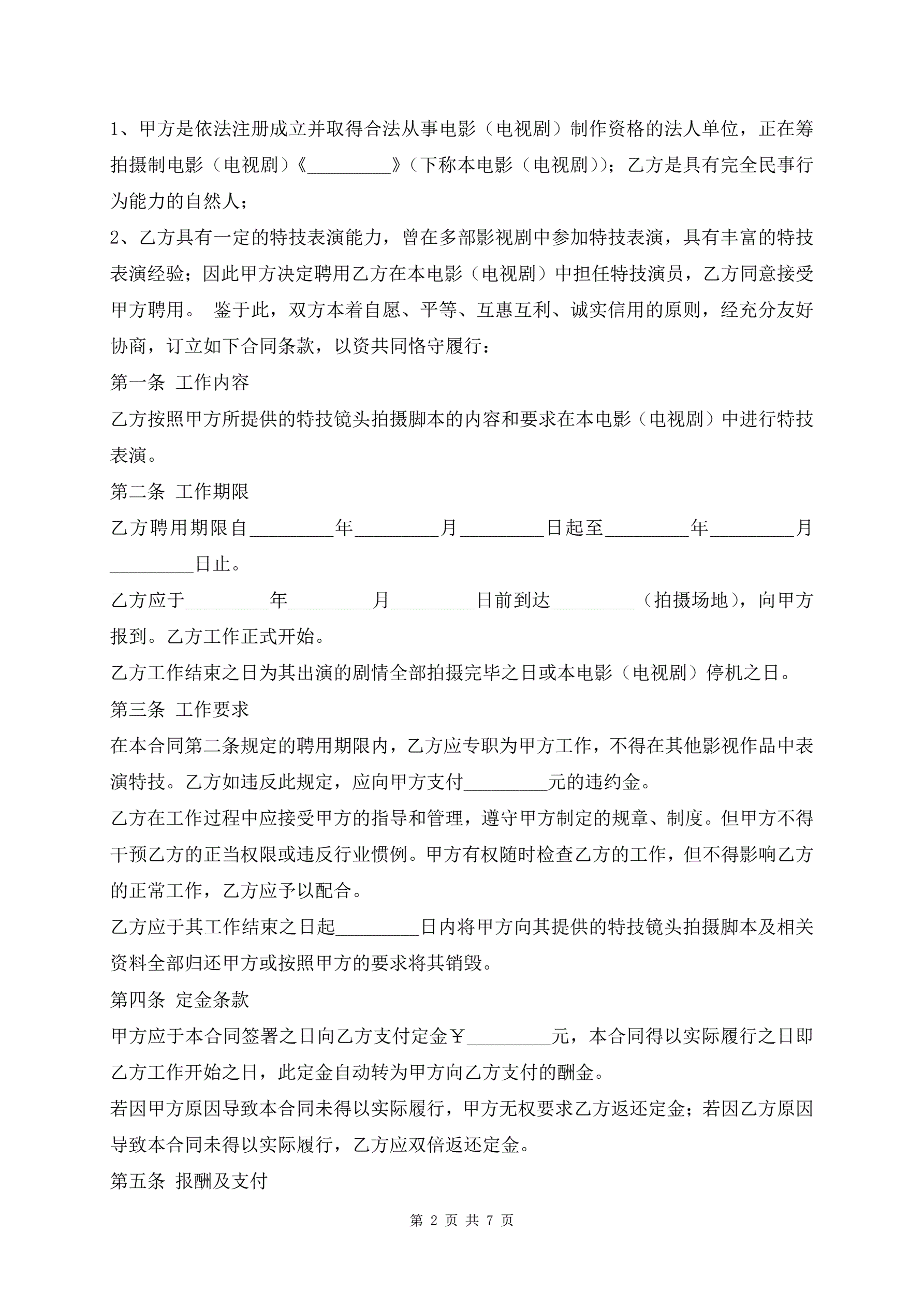 >影视剧特技演员聘用合同通用版