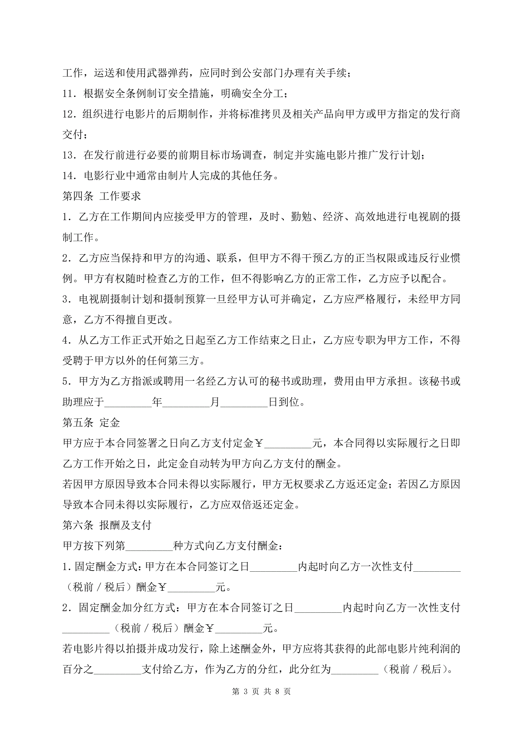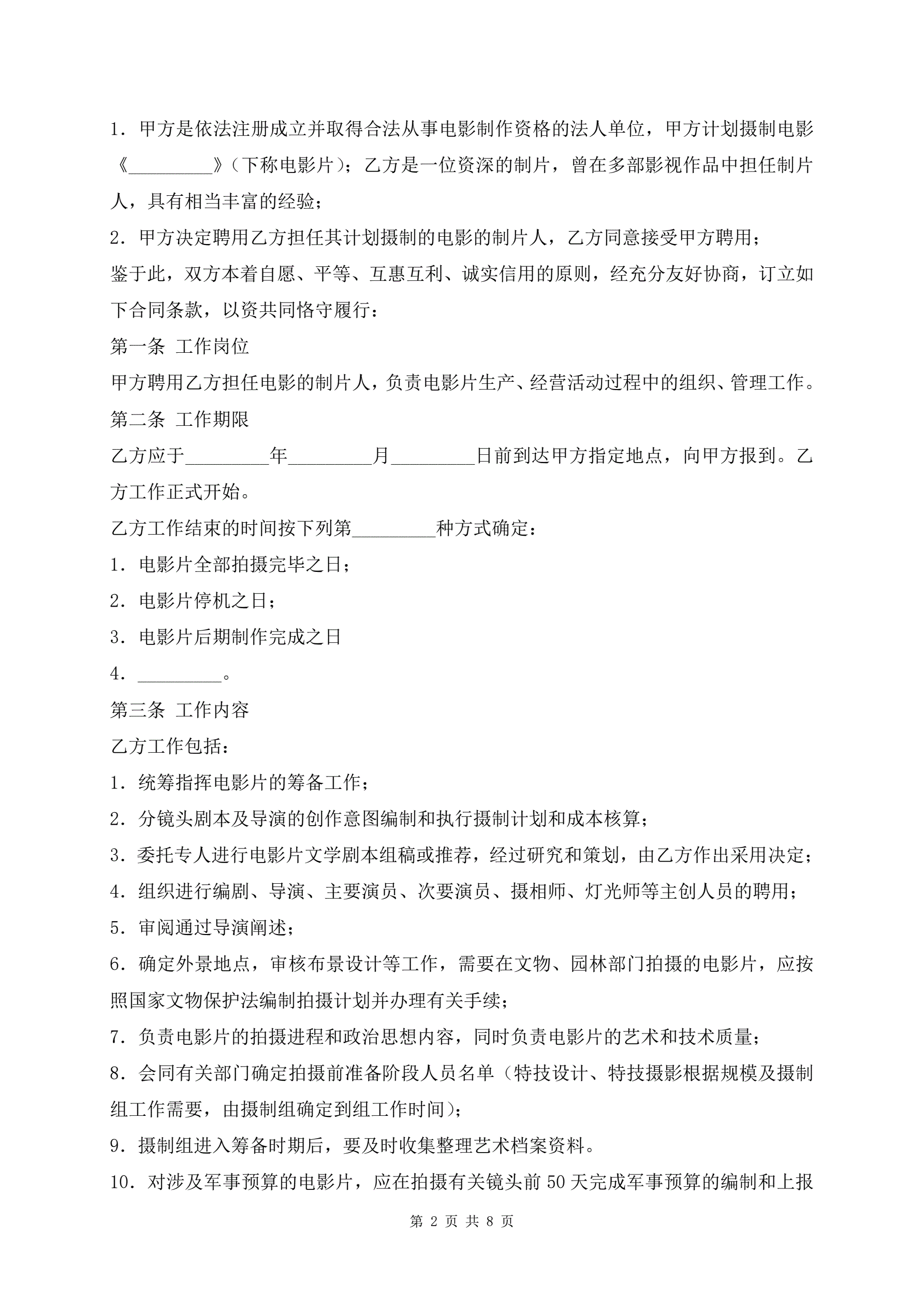 电视剧制片人聘用合同最新版