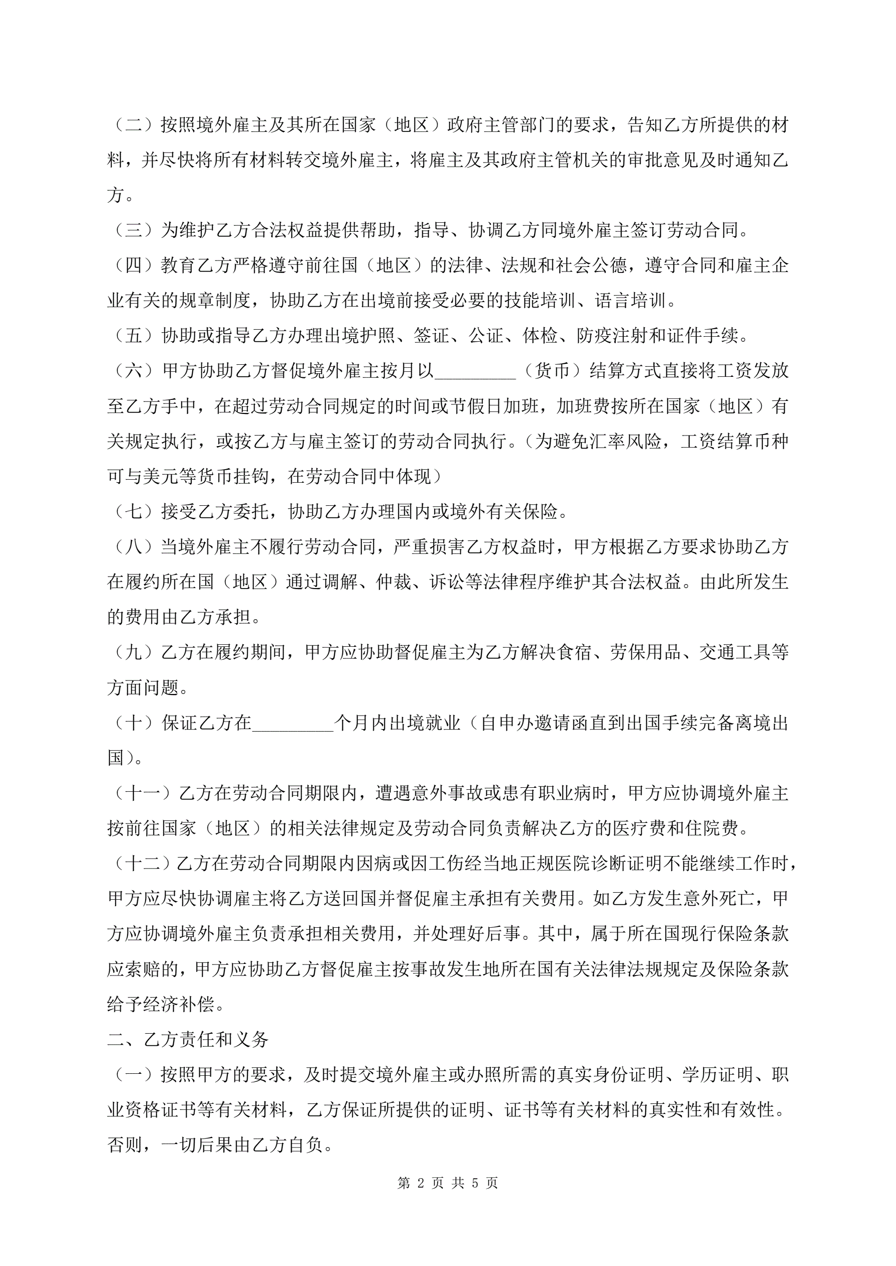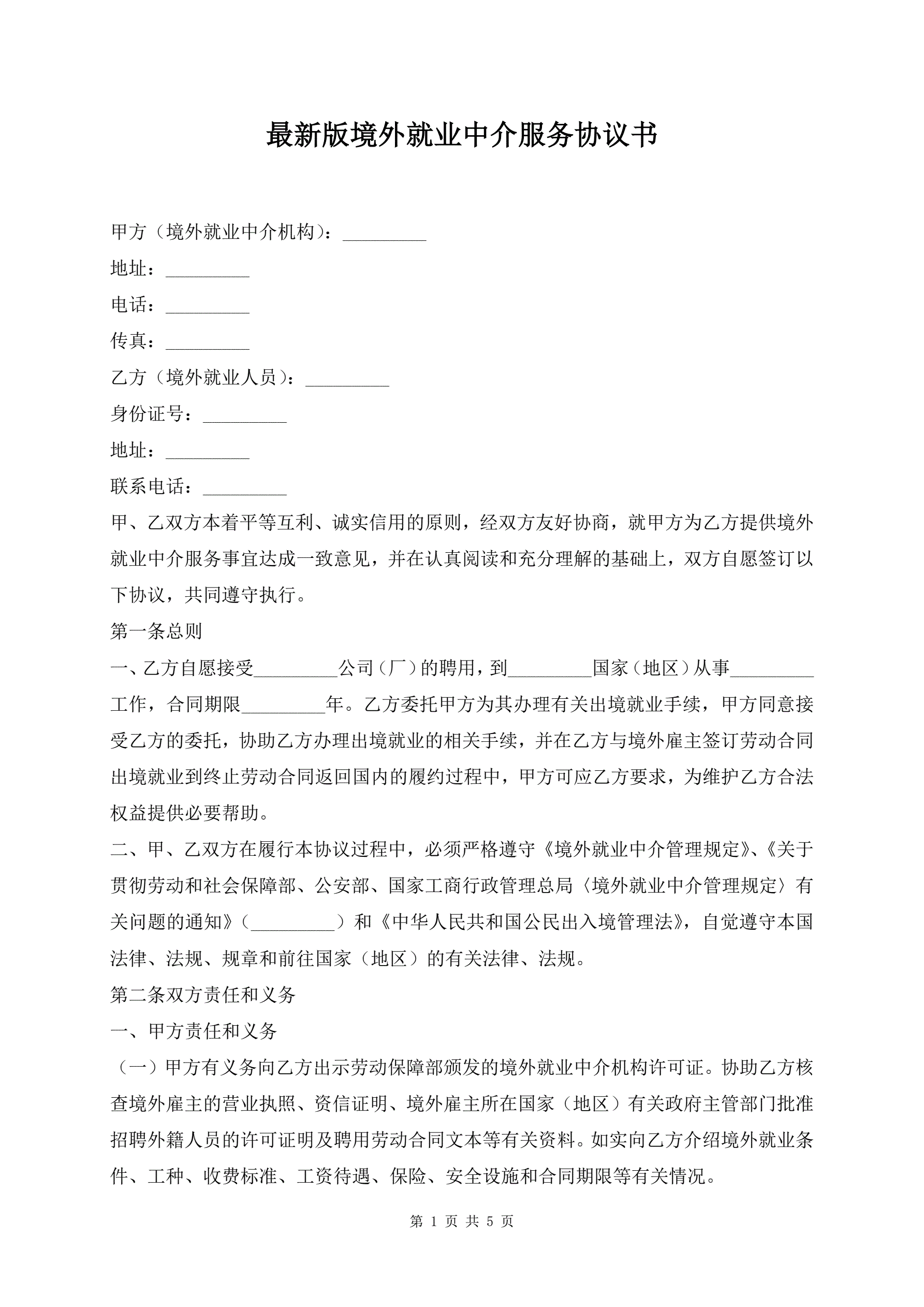 最新版境外就业中介服务协议书