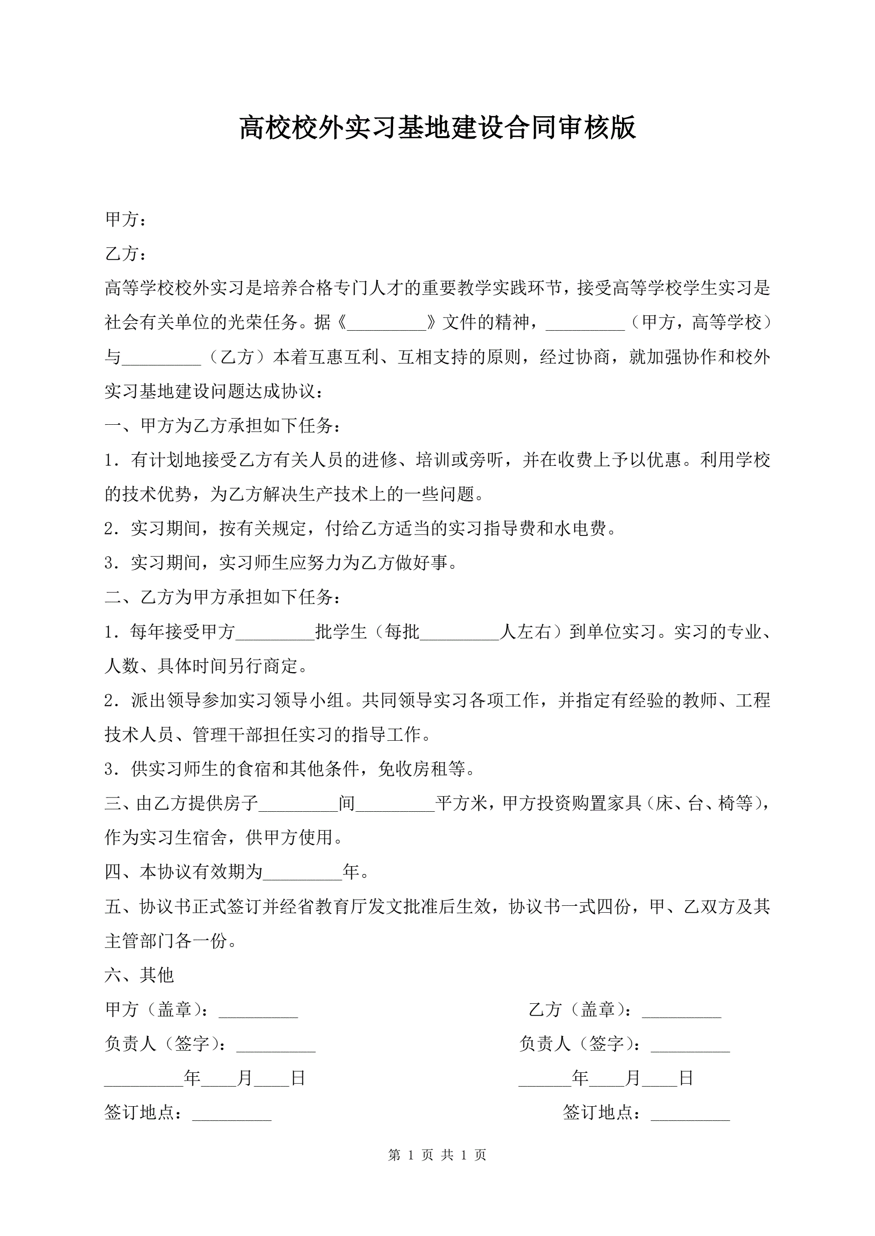 >高校校外实习基地建设合同审核版