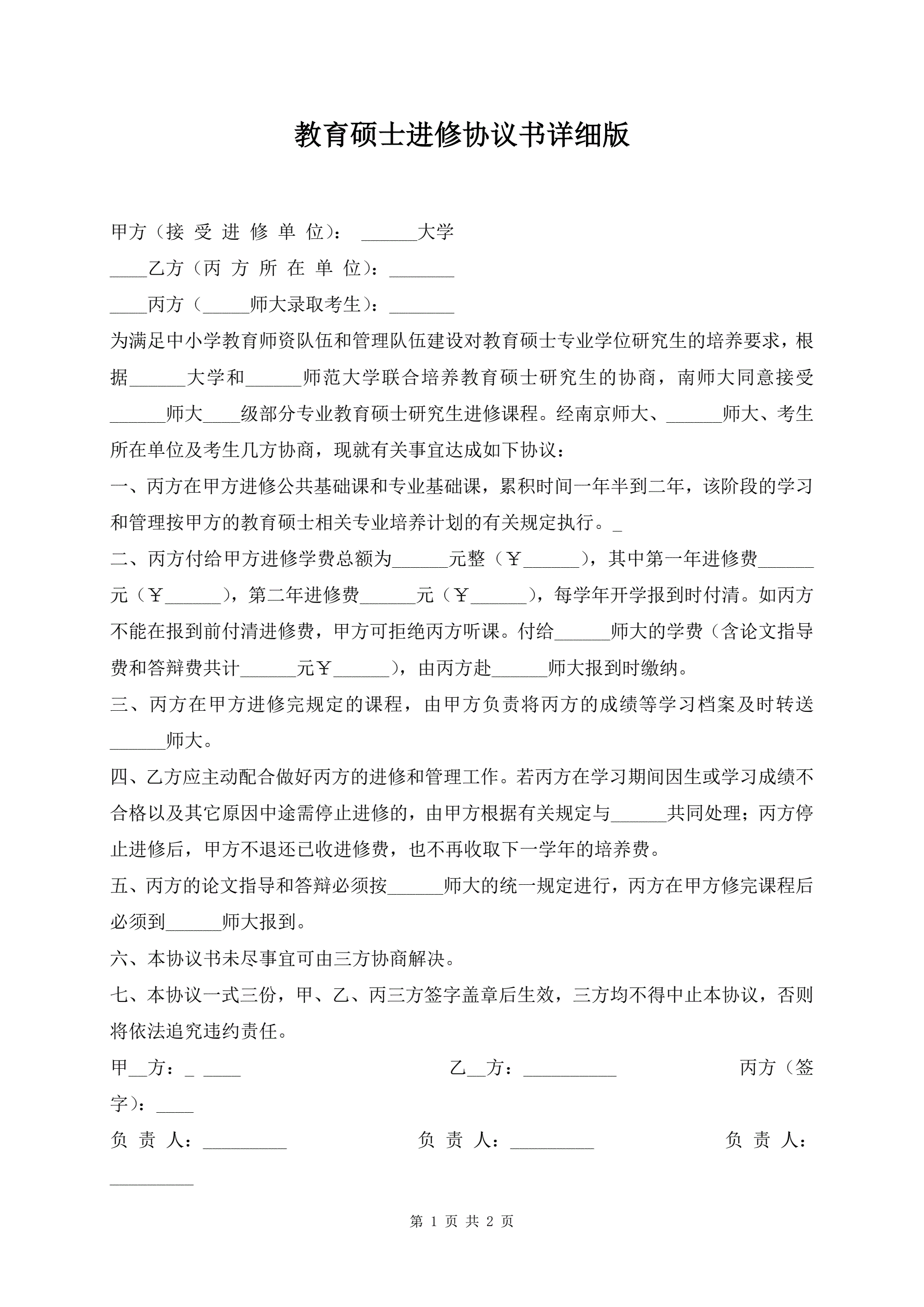 >教育硕士进修协议书详细版