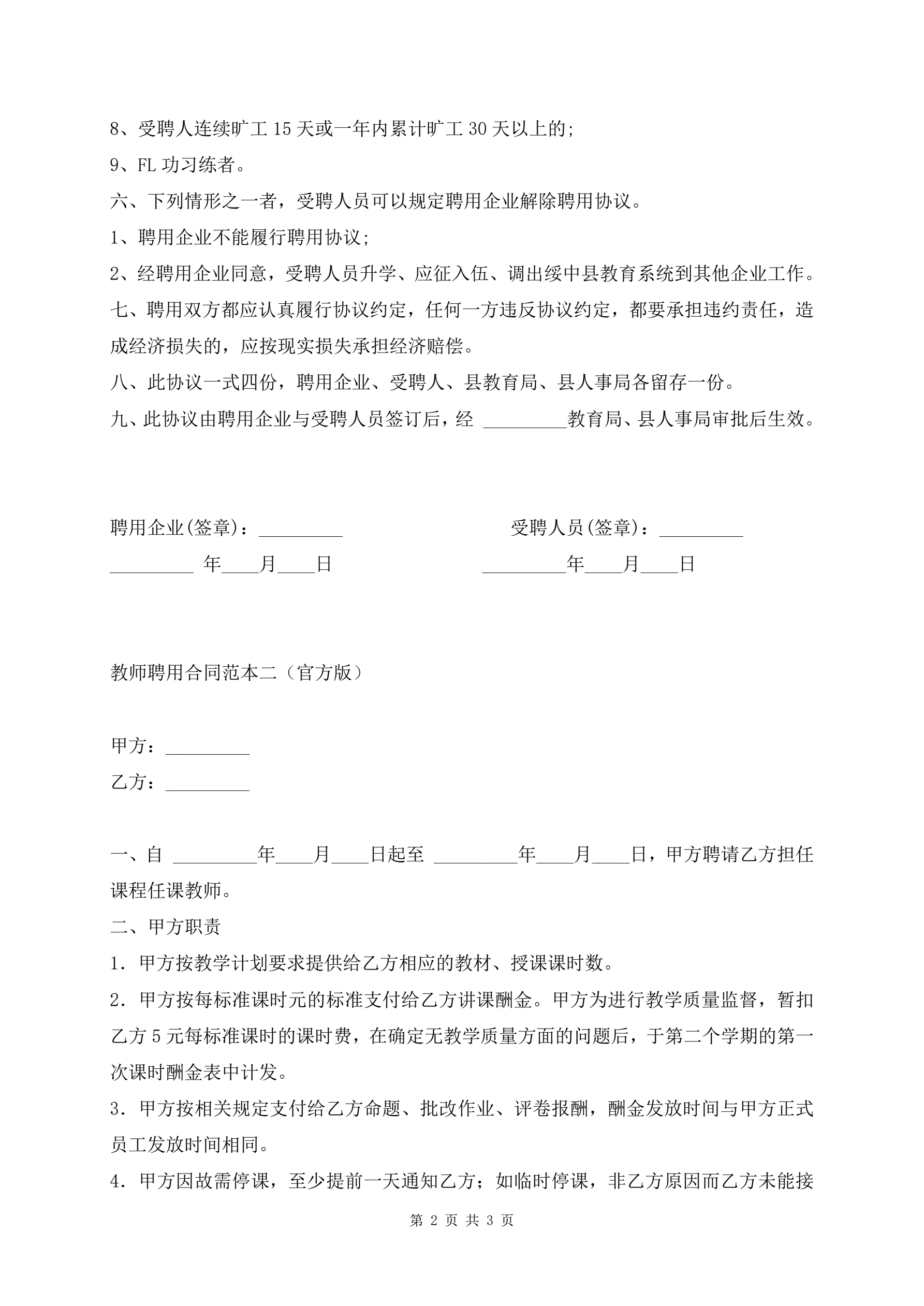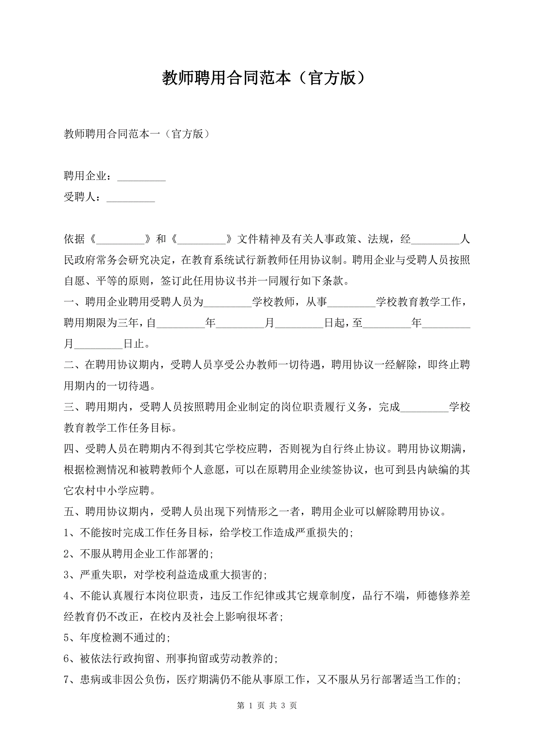 教师聘用合同范本(官方版)
