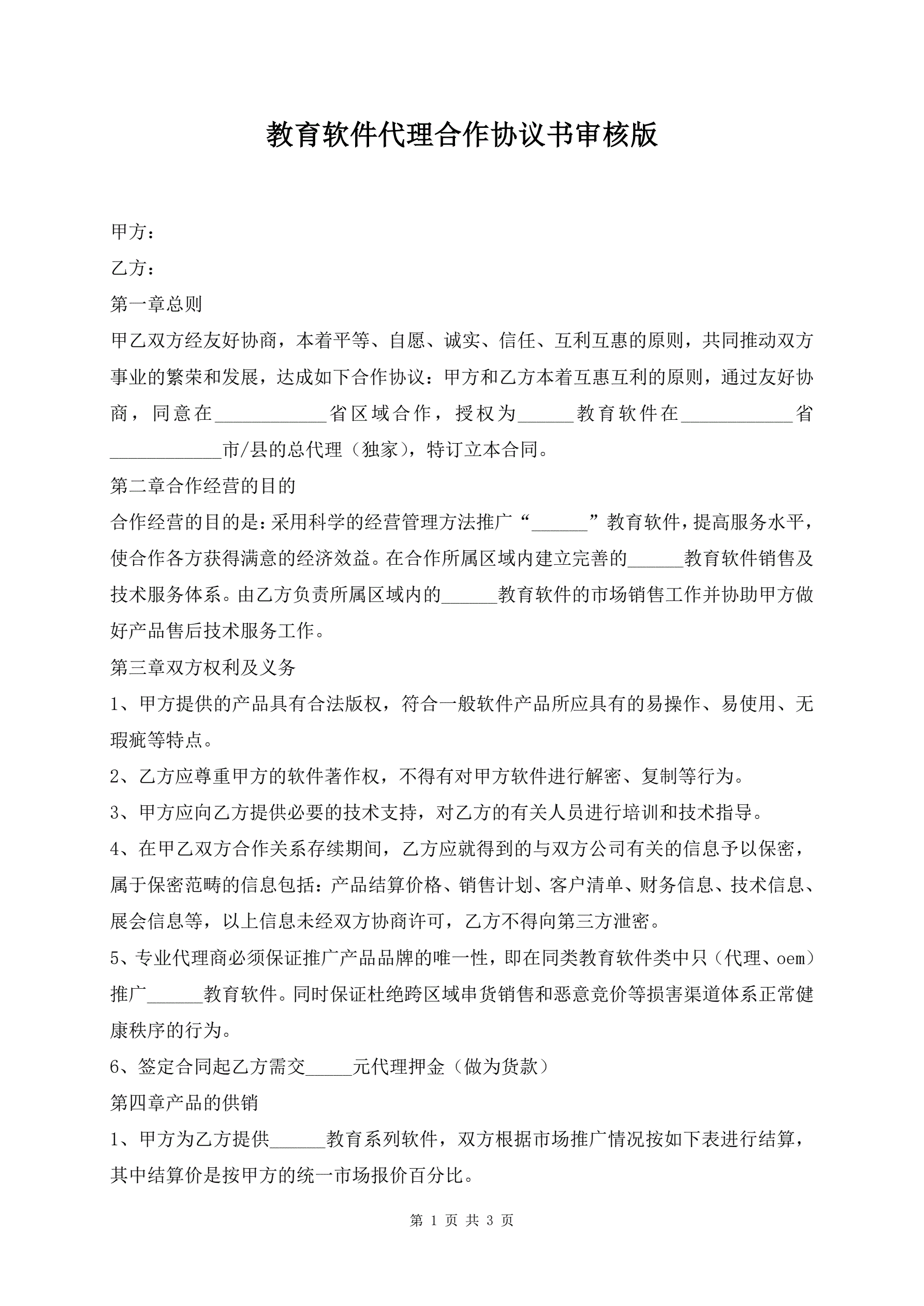 >教育软件代理合作协议书审核版