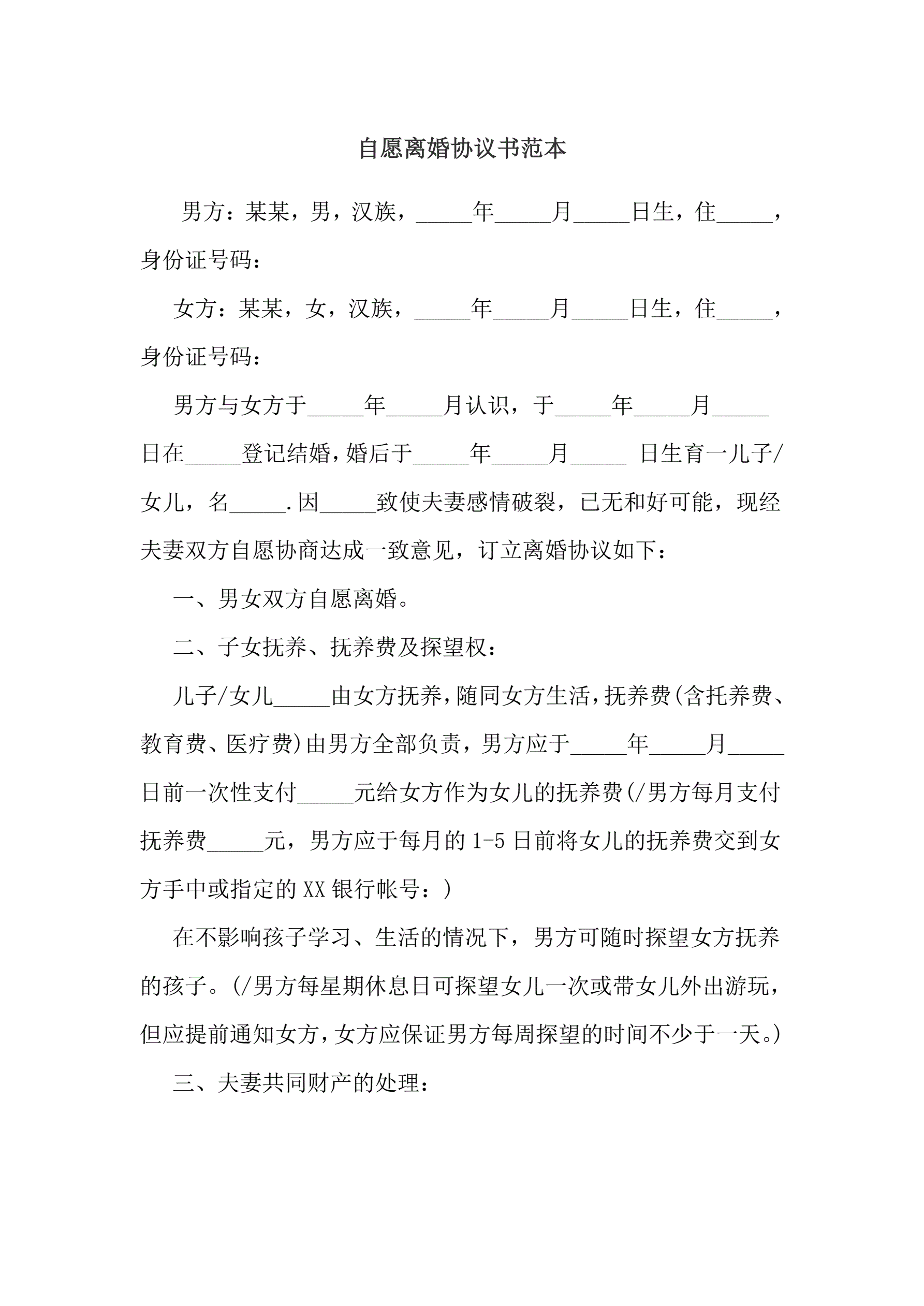 合同名称:自愿离婚协议书范本