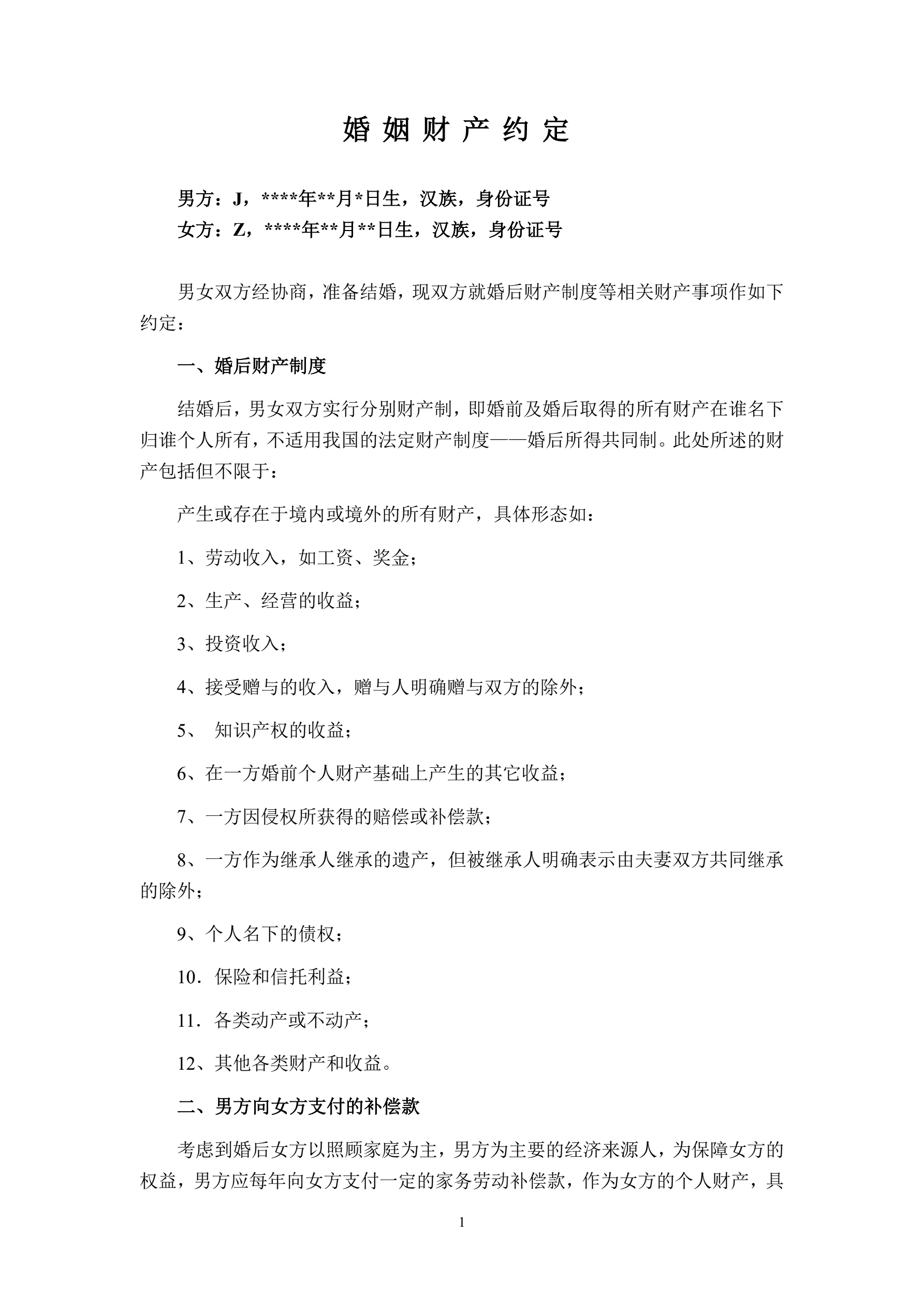 >婚姻财产约定