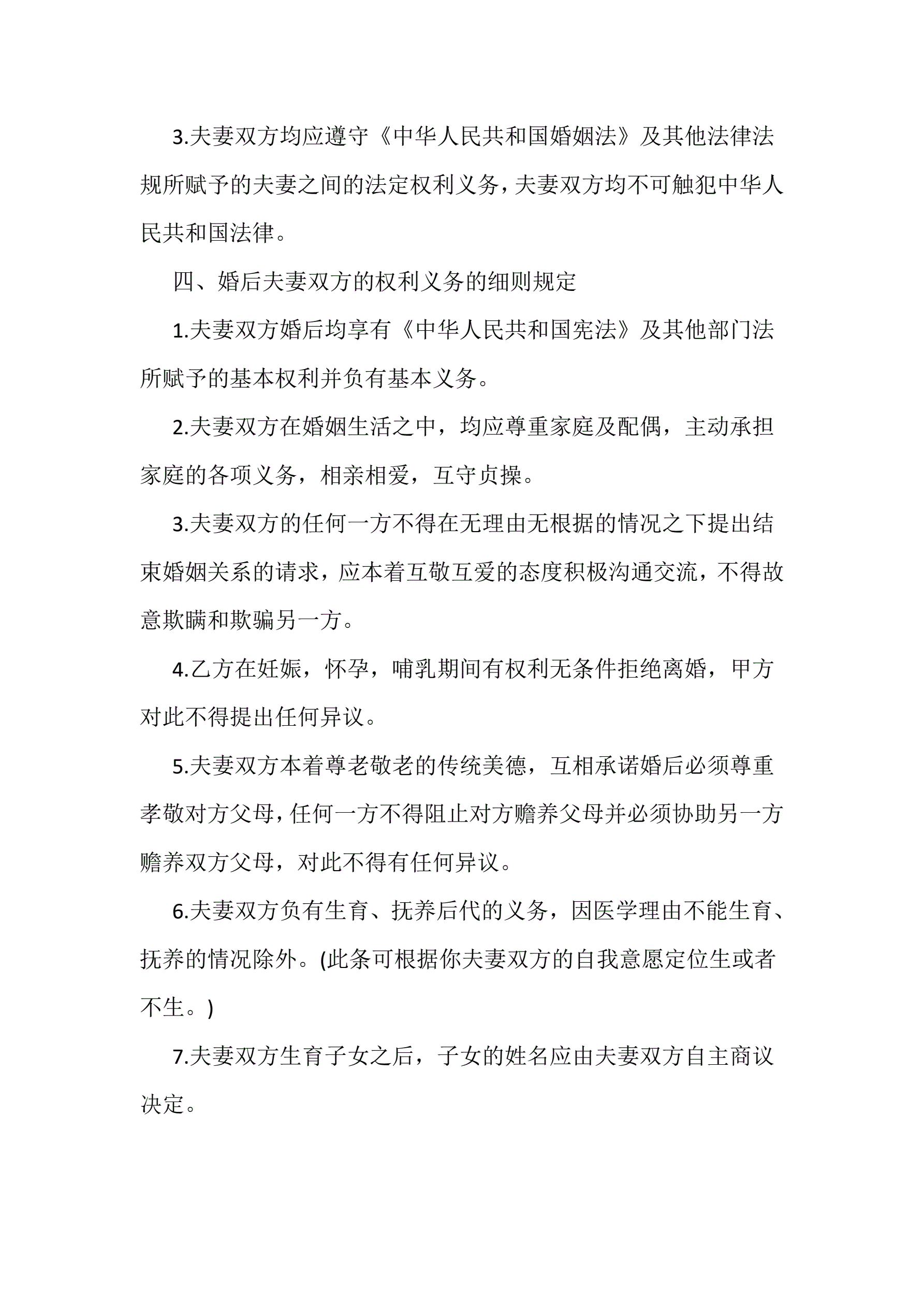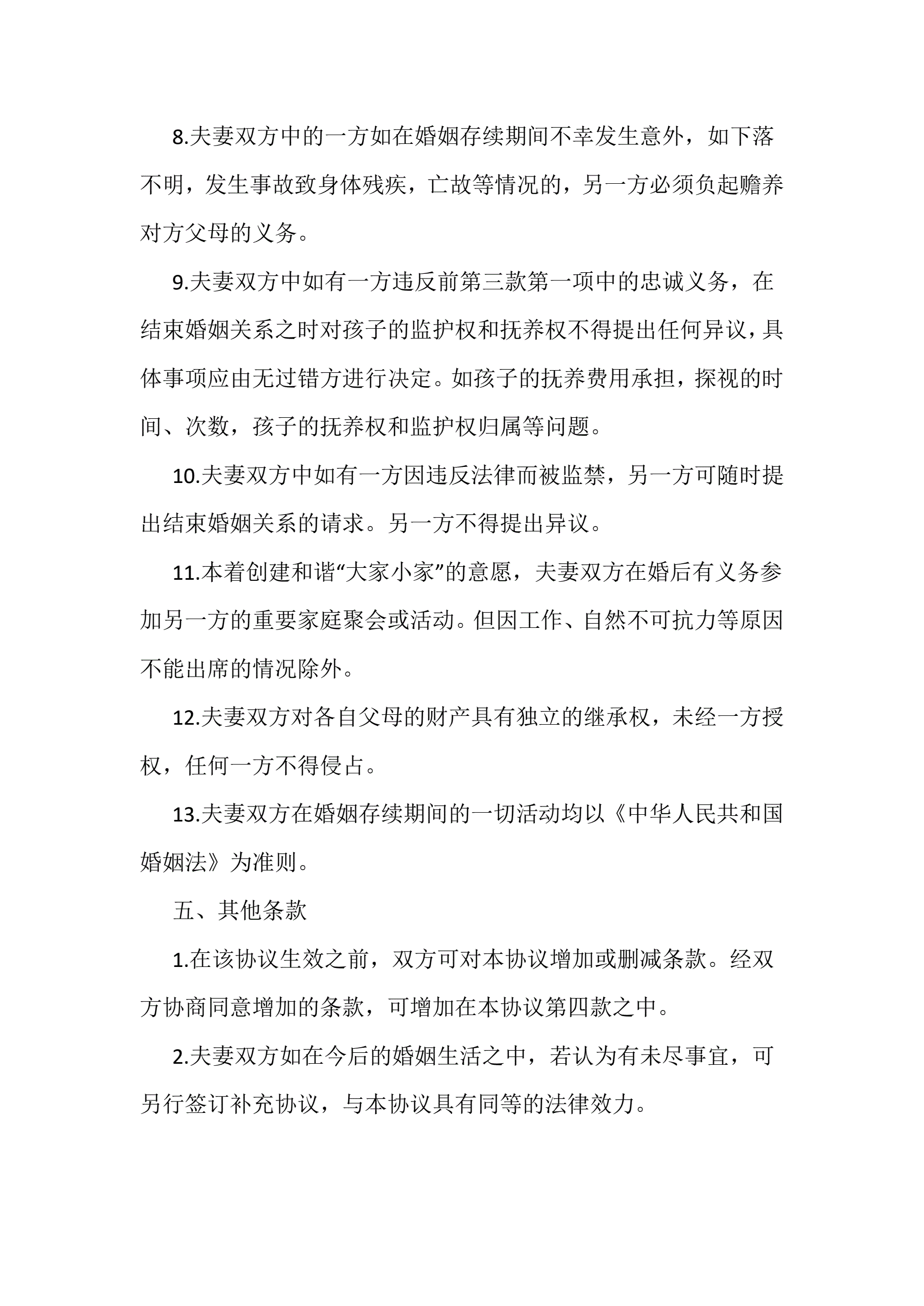 夫妻婚前协议书范本