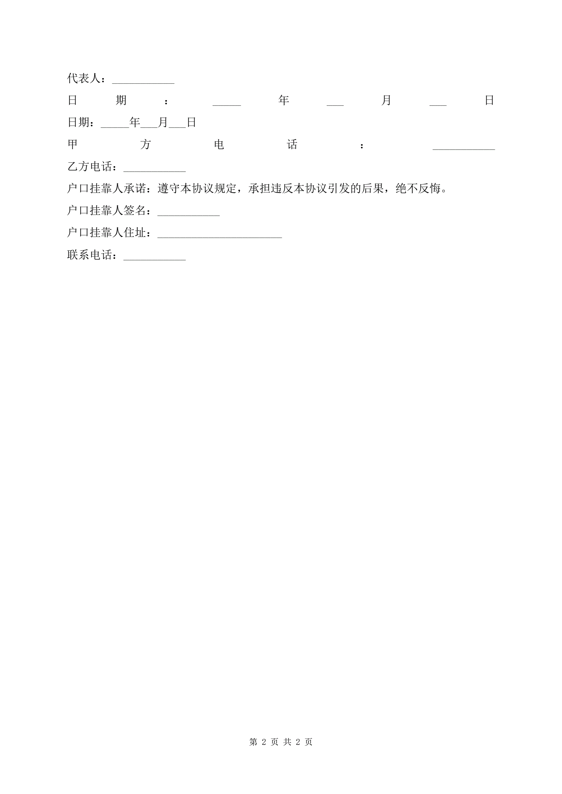 户口挂靠合同范本