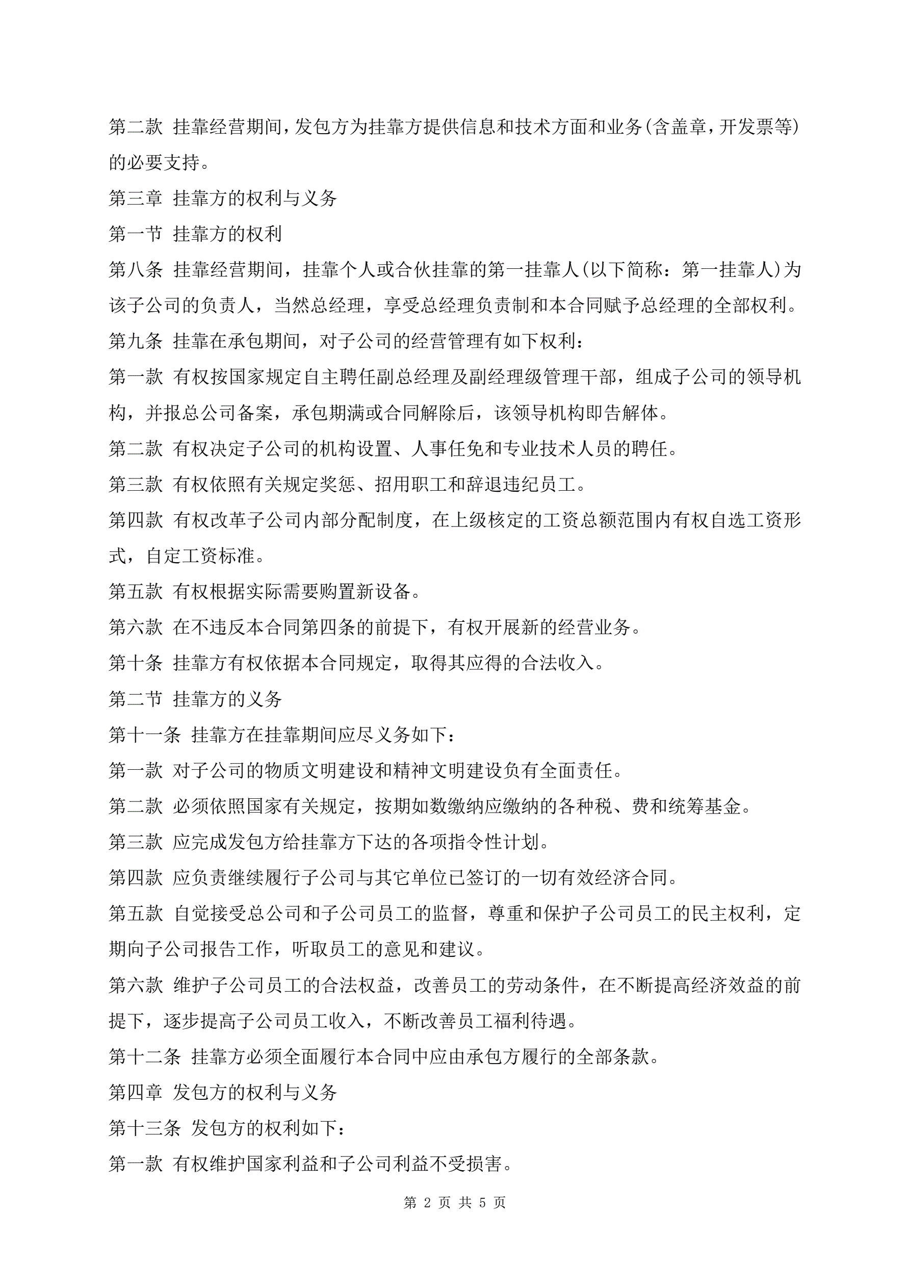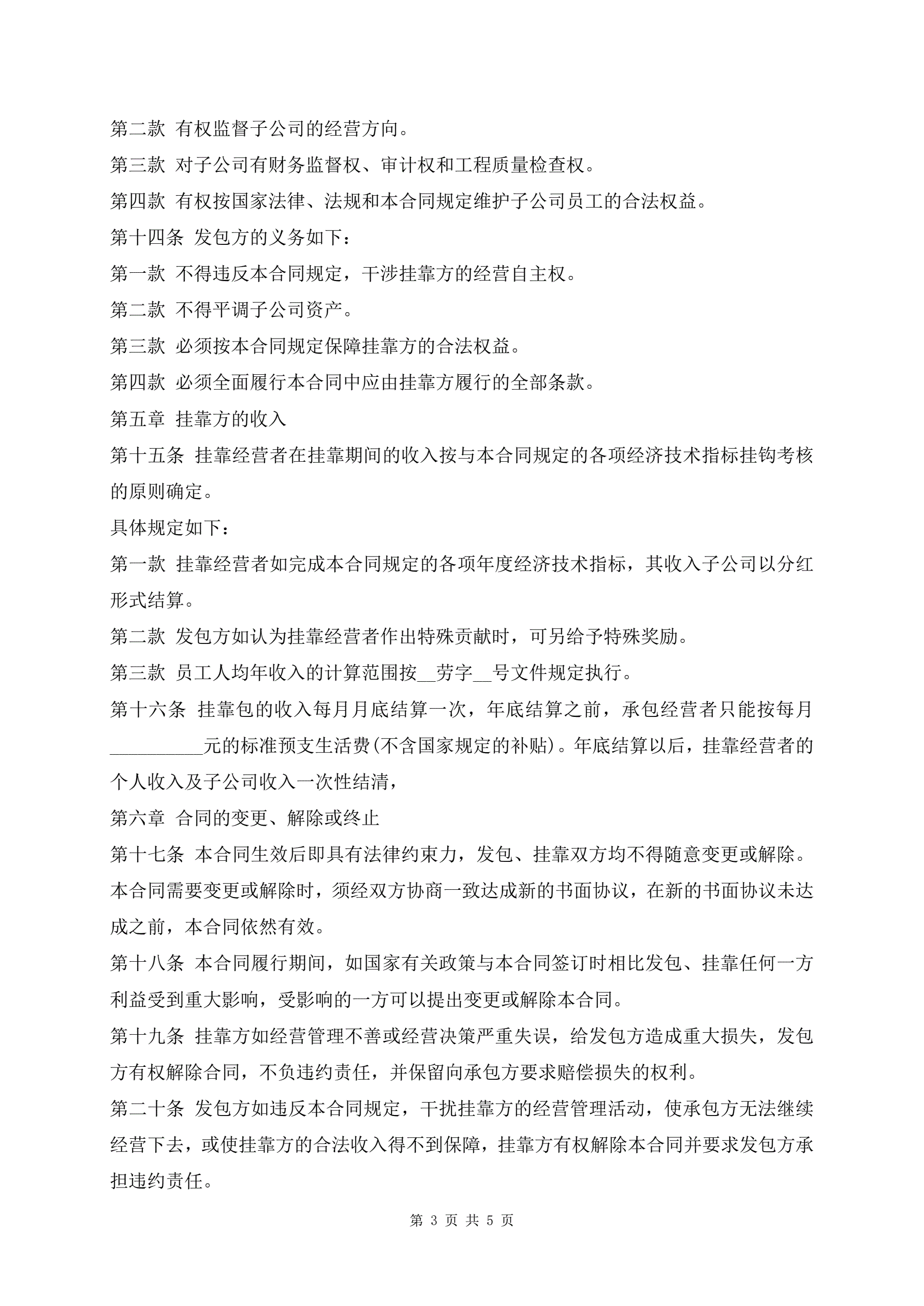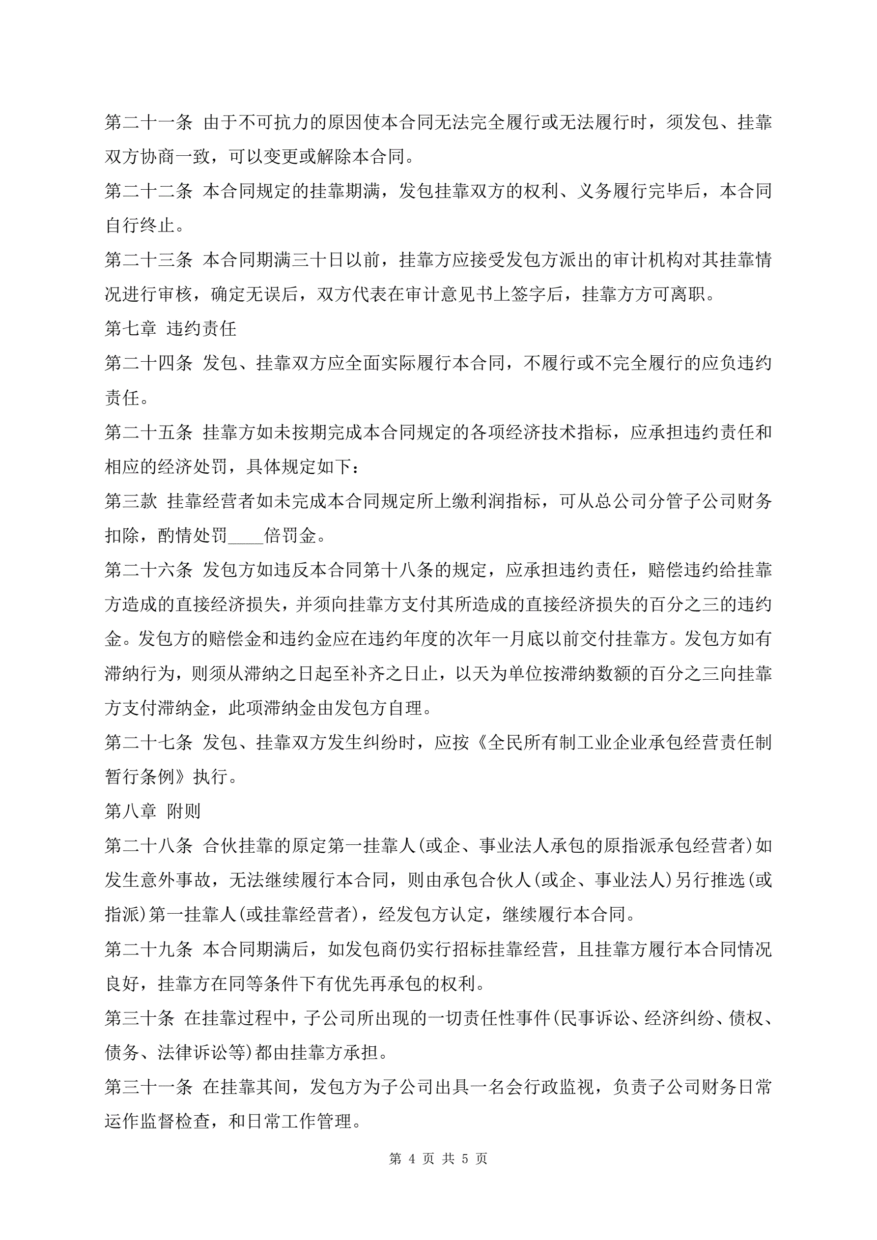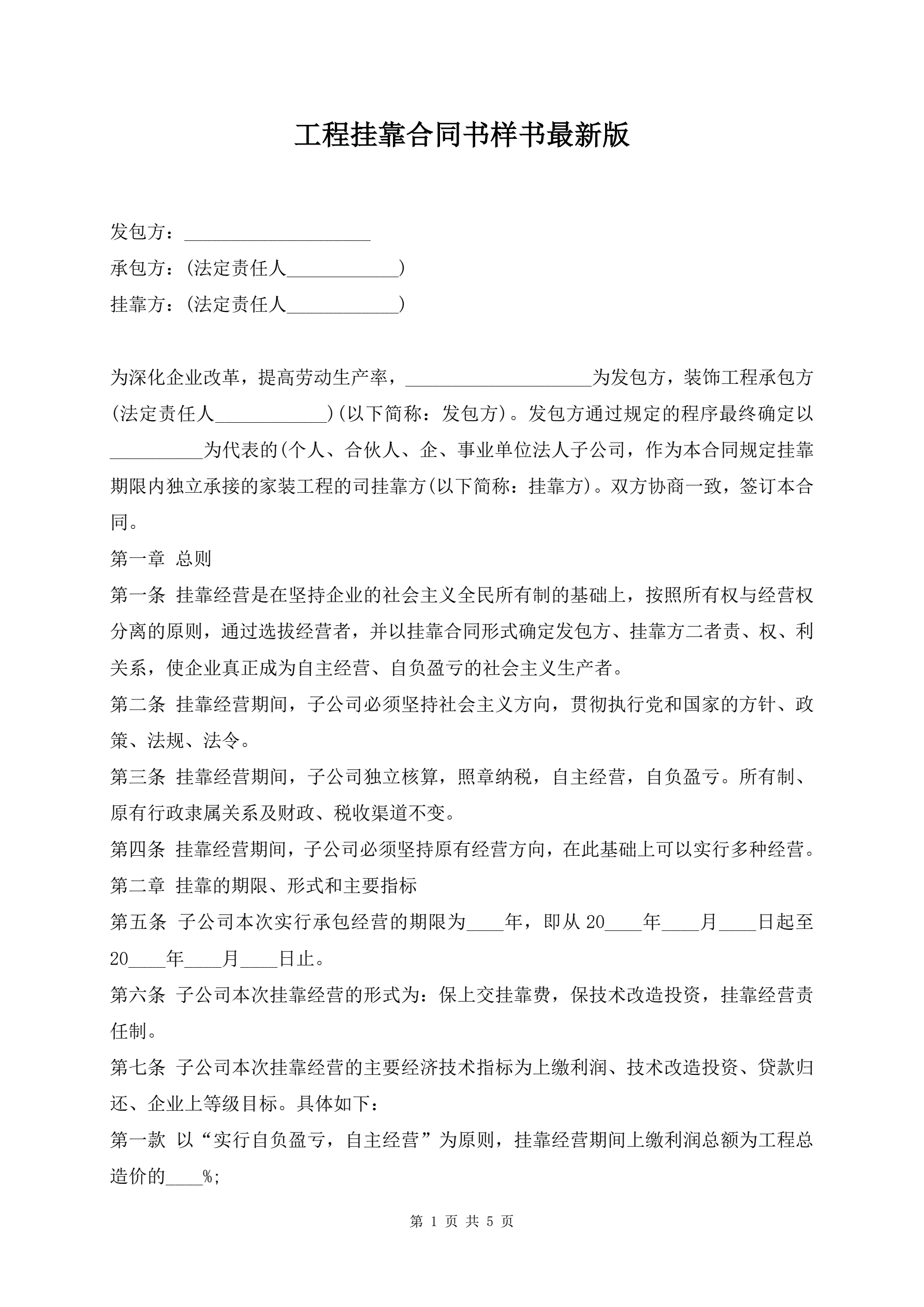 工程挂靠合同书样书最新版
