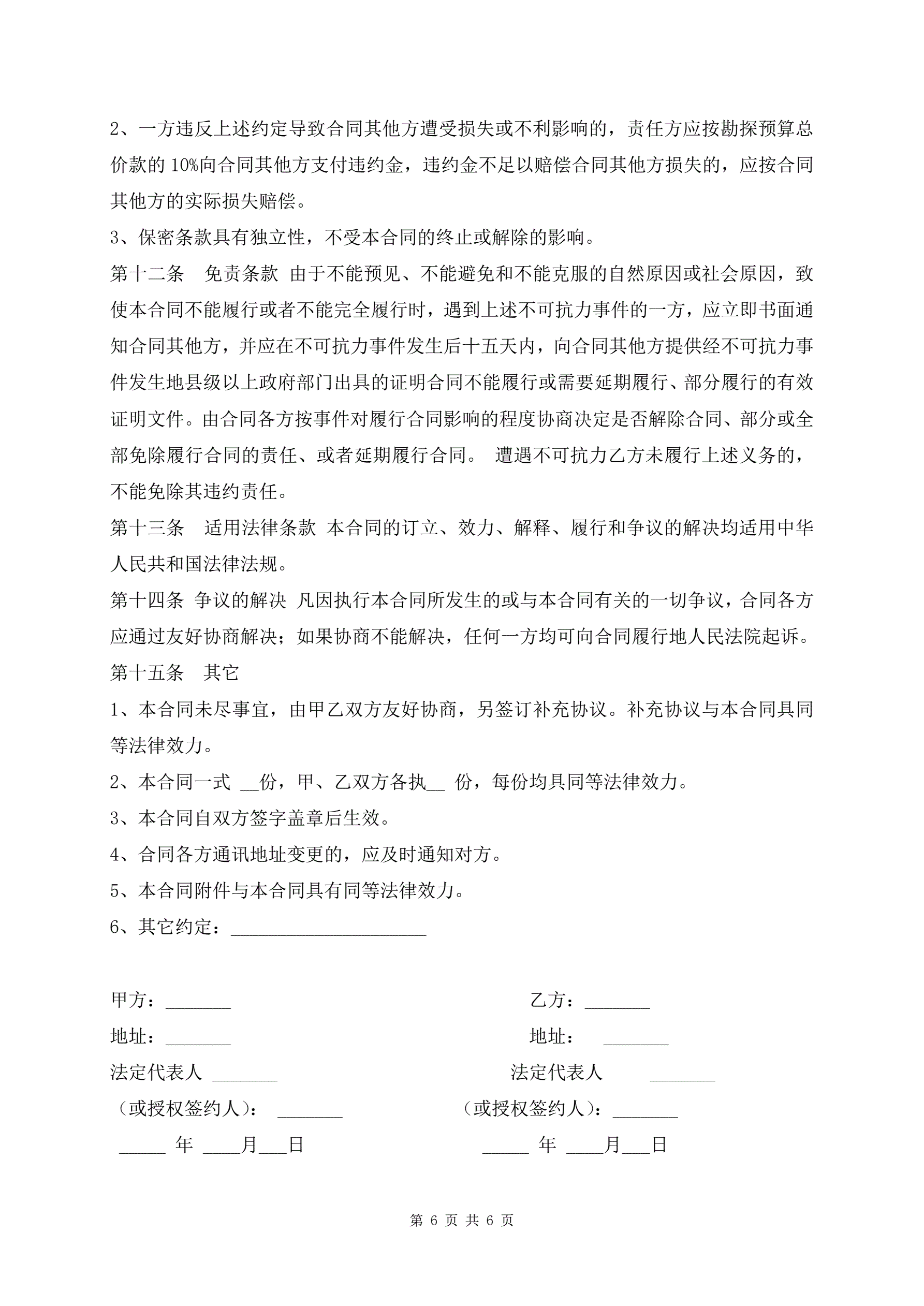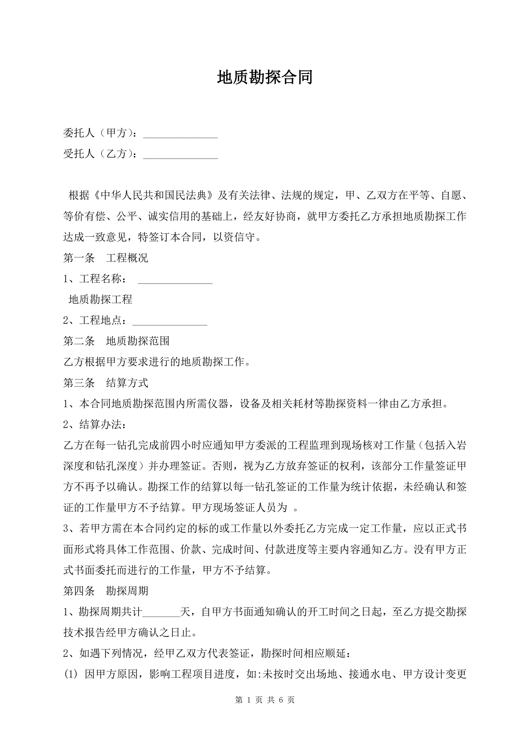 >地质勘探合同
