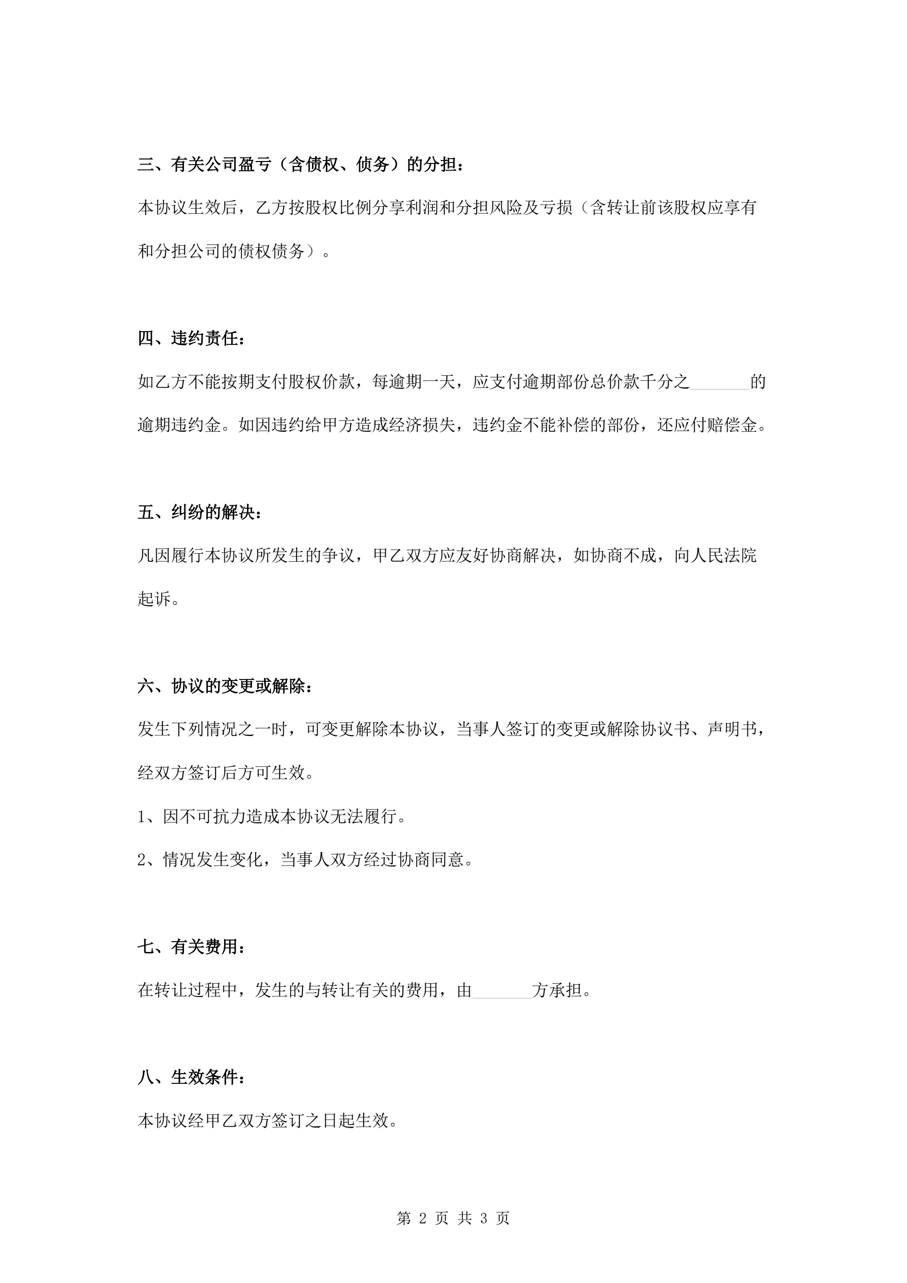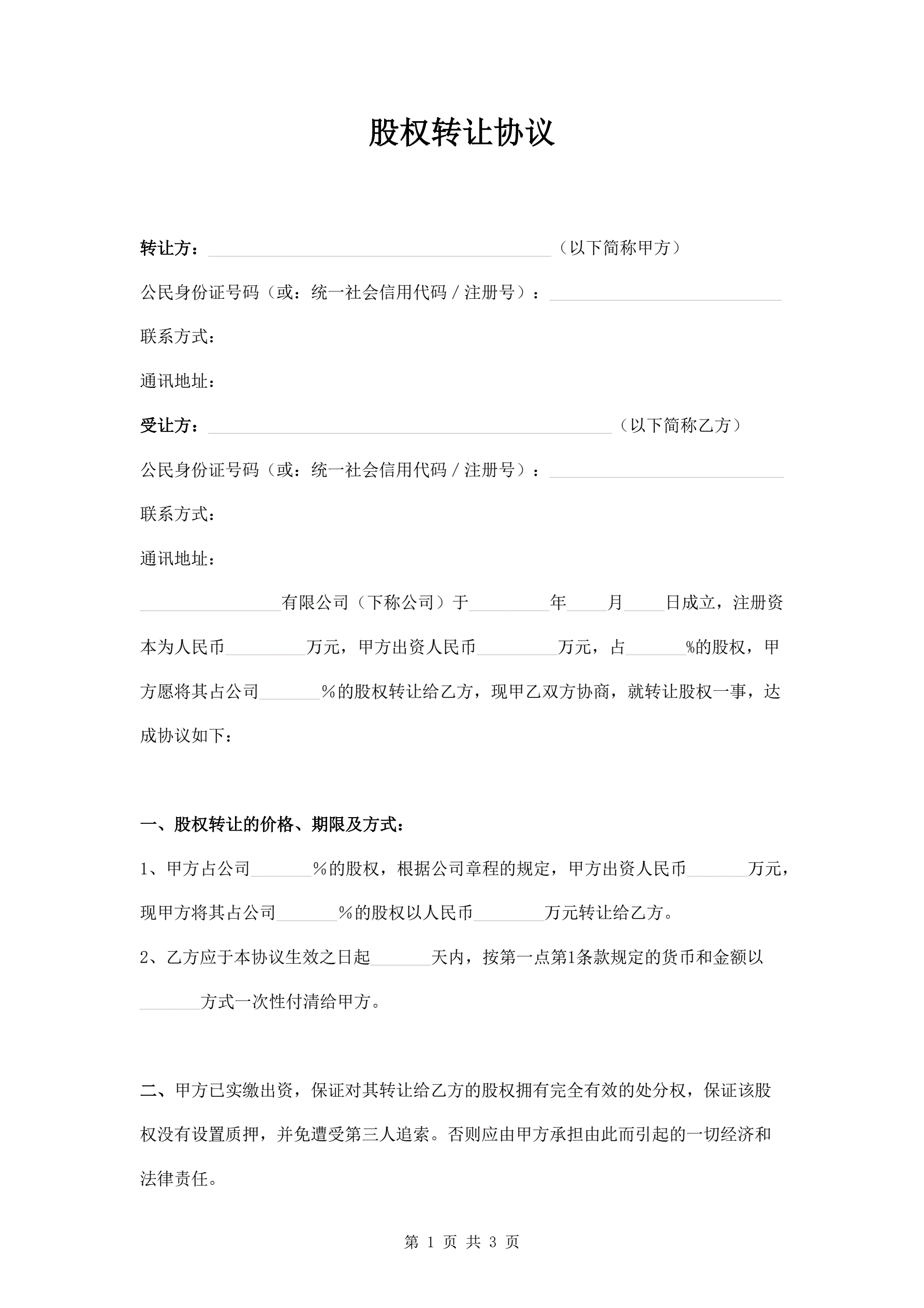 股权转让协议(指导版)