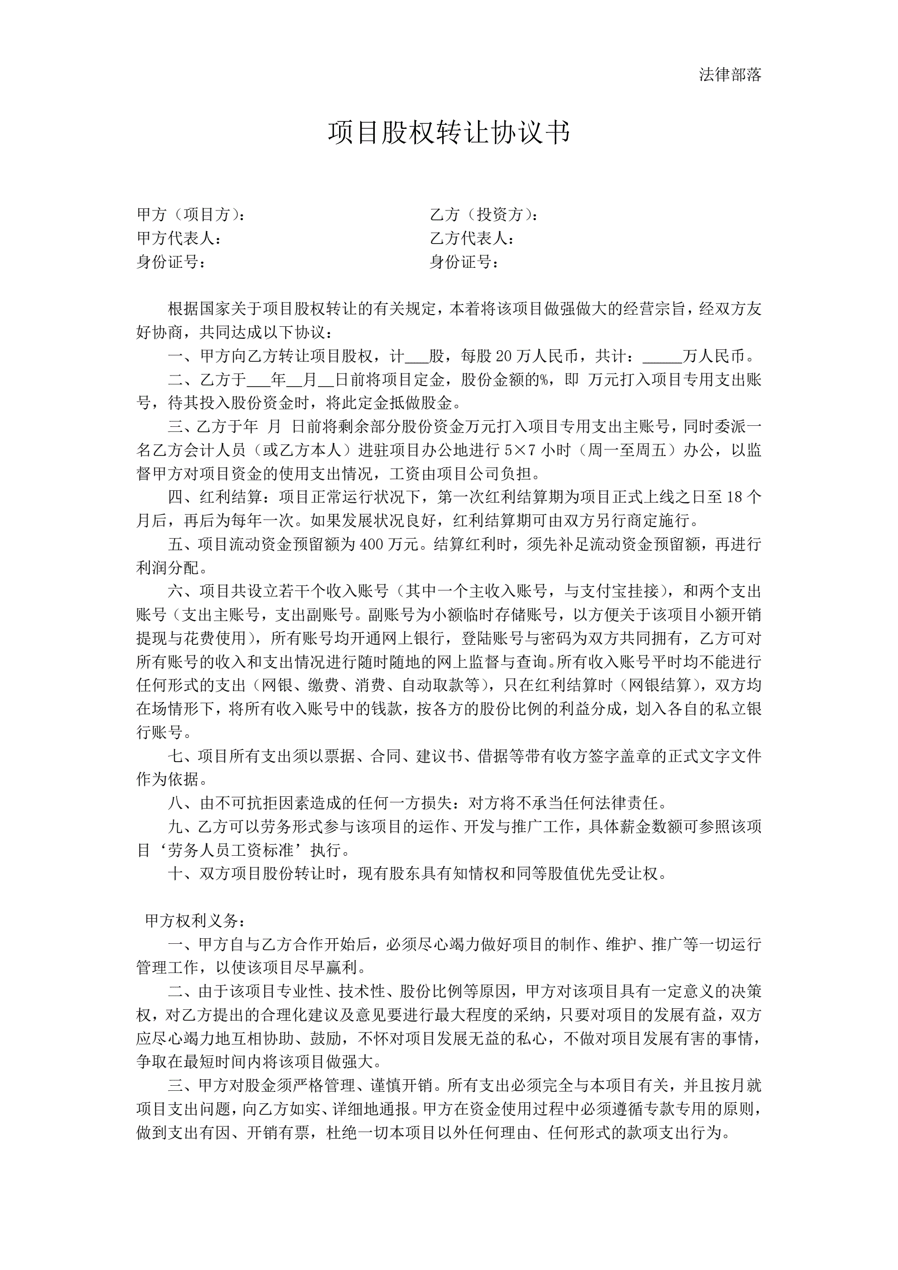 项目股权转让协议书