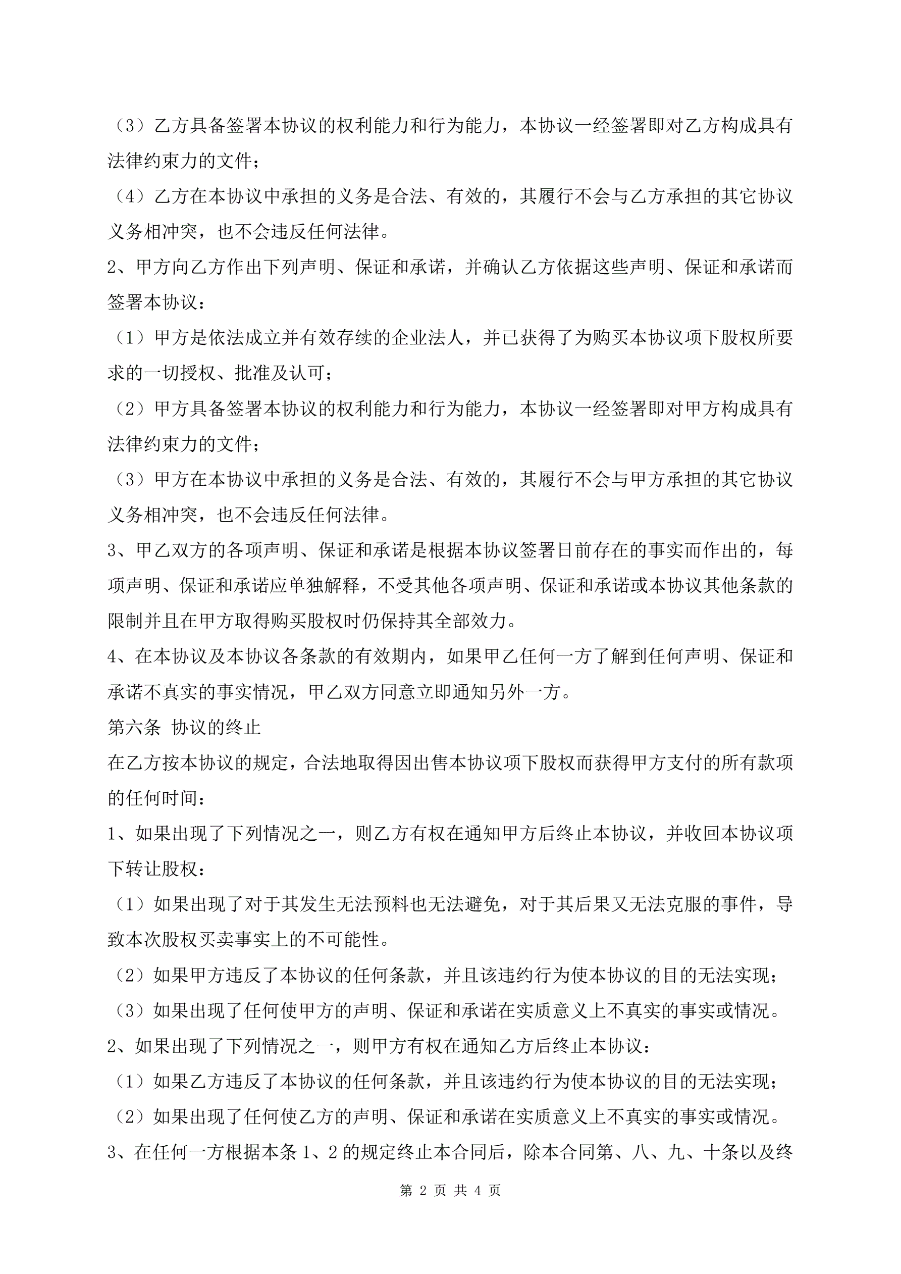 最新股权转让协议热门版