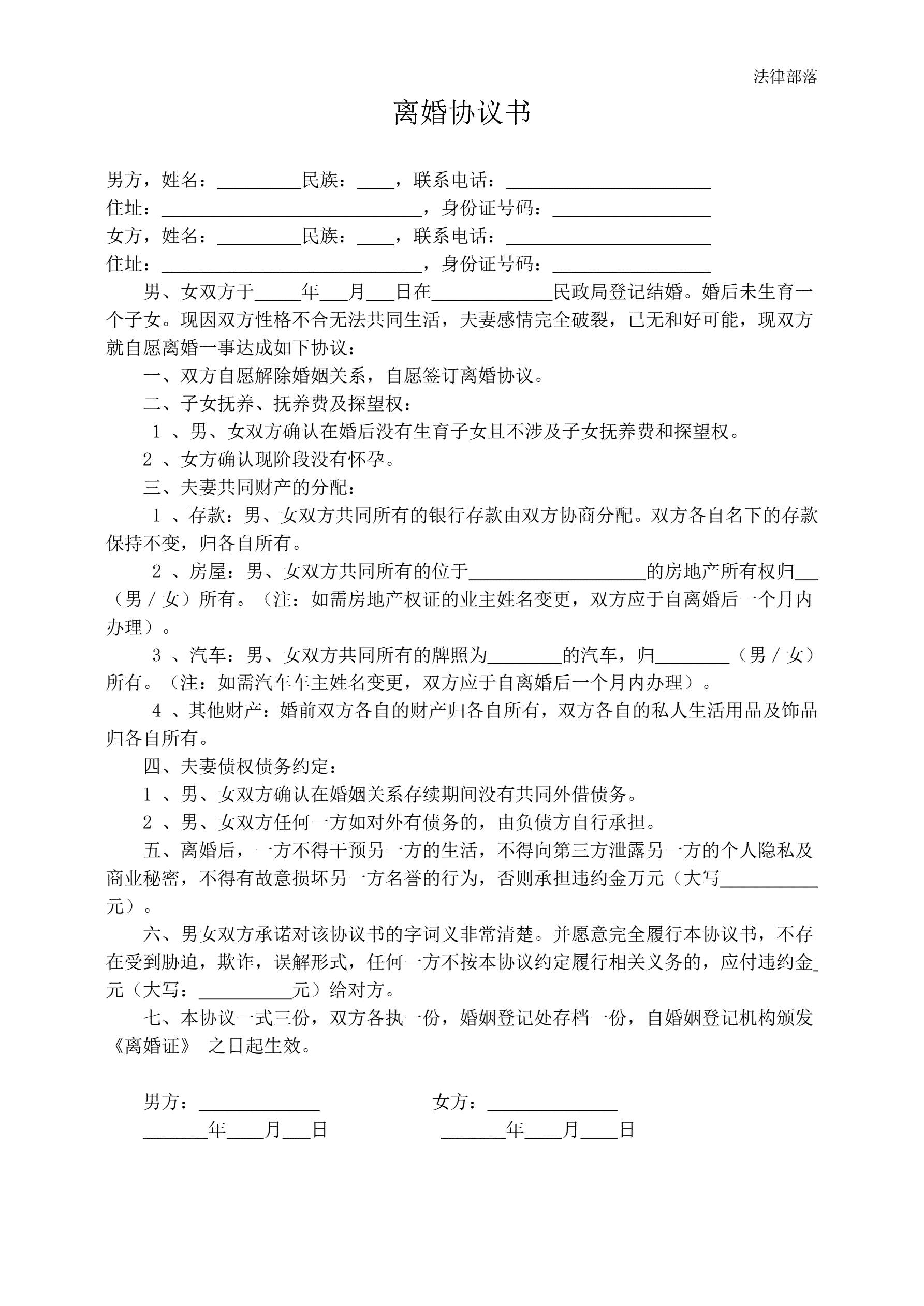 离婚协议书通用版