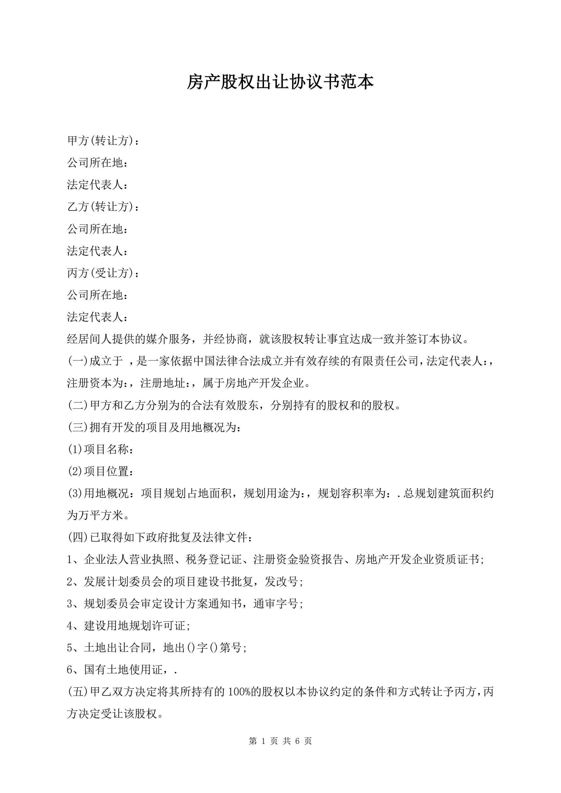 房产股权出让协议书范本