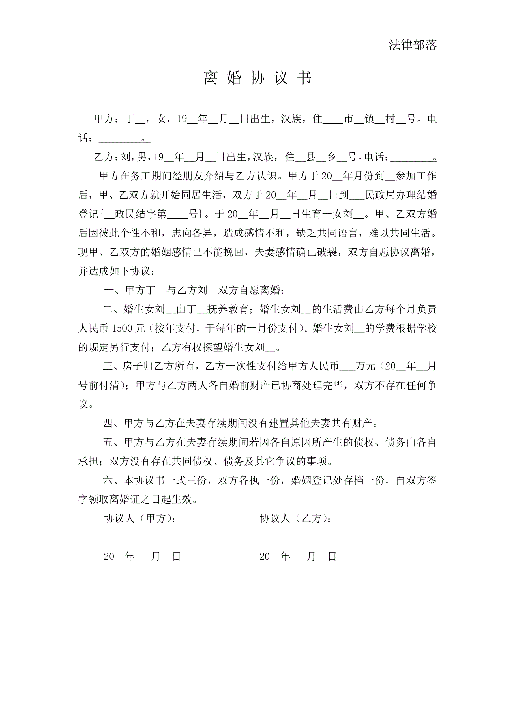 离婚协议书通用版本