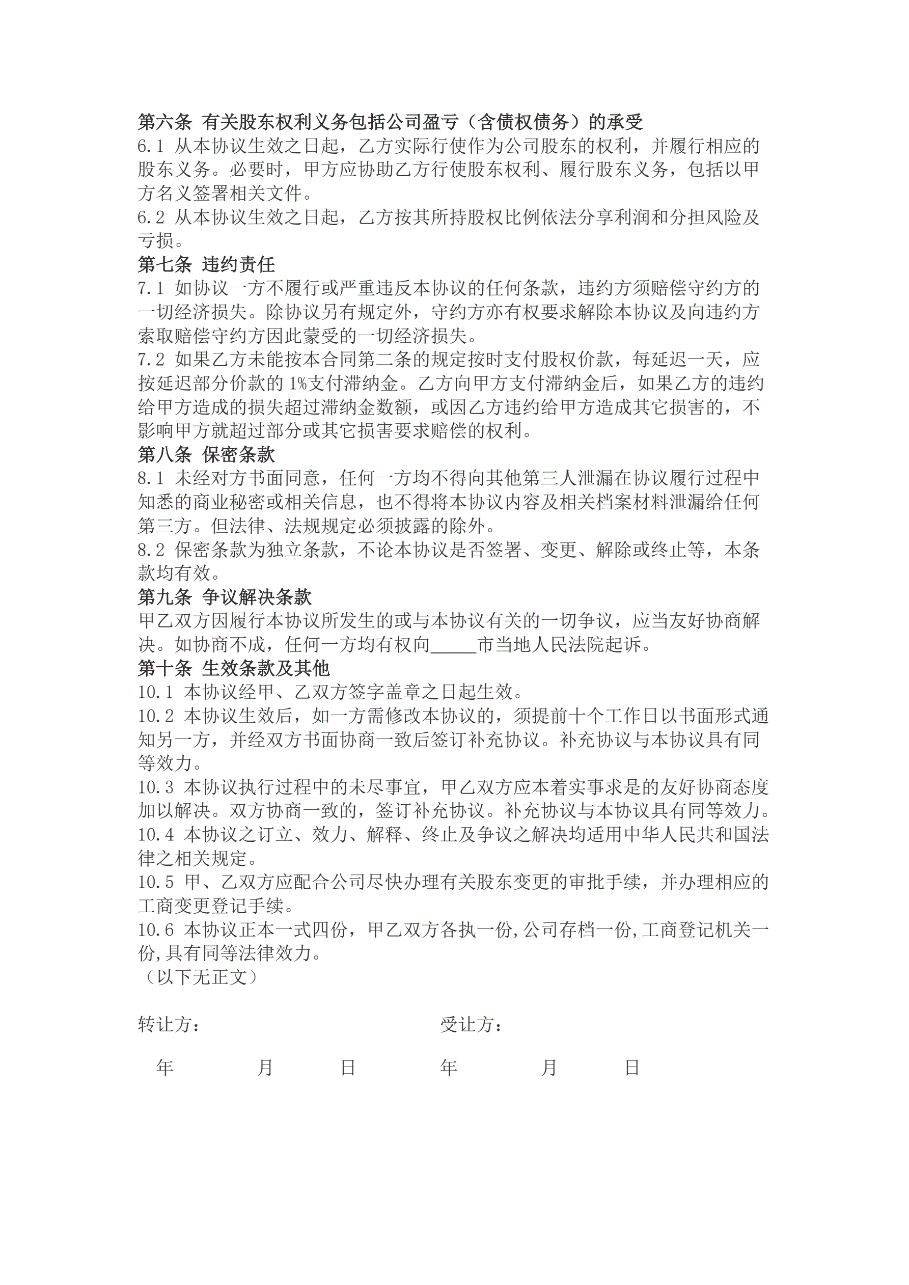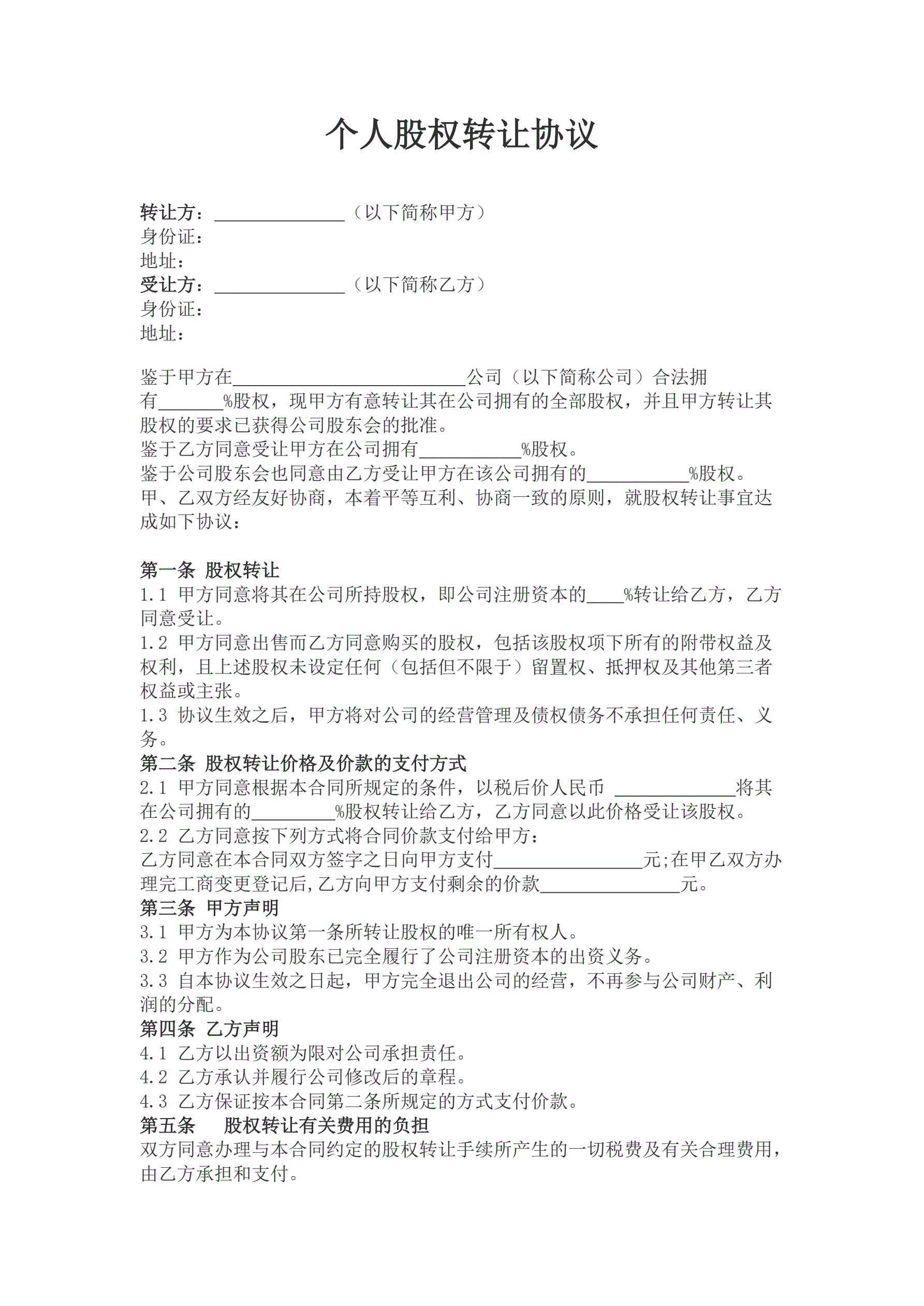 个人股权转让协议