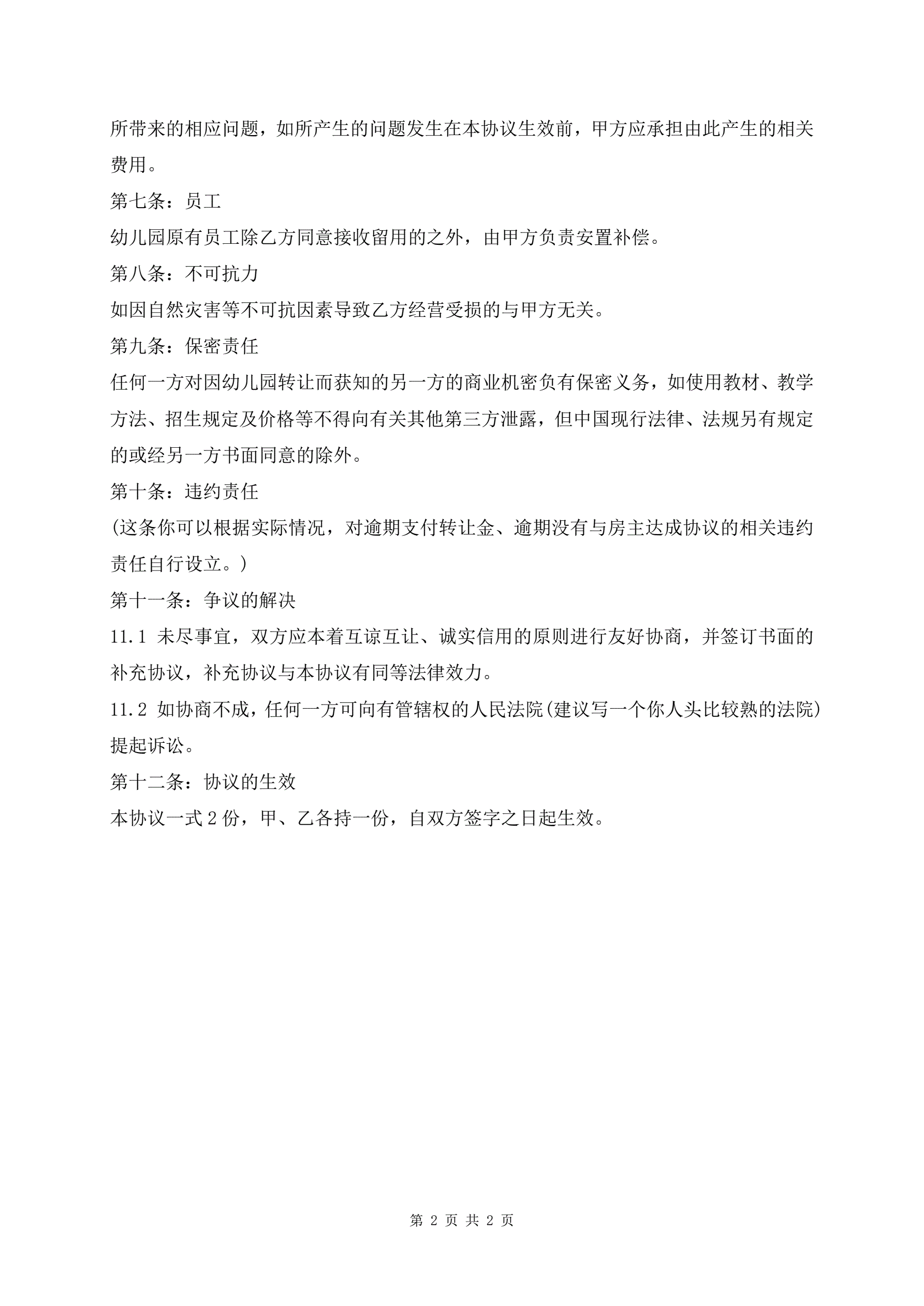 >幼儿园股份转让合同书