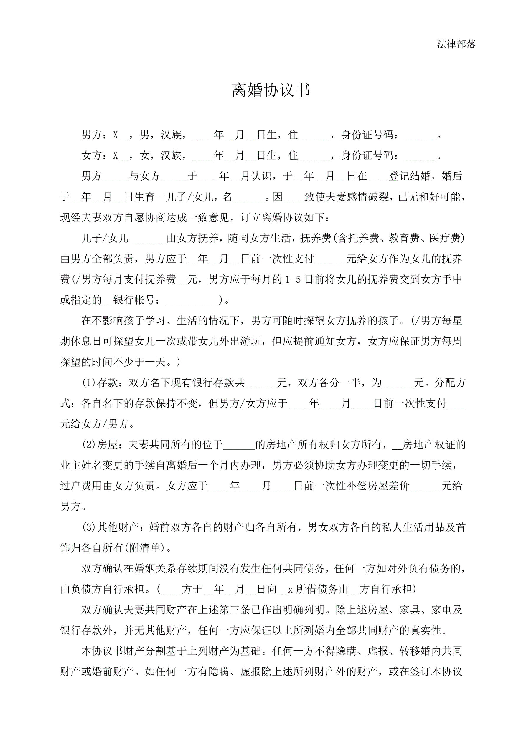 >离婚协议书热门版