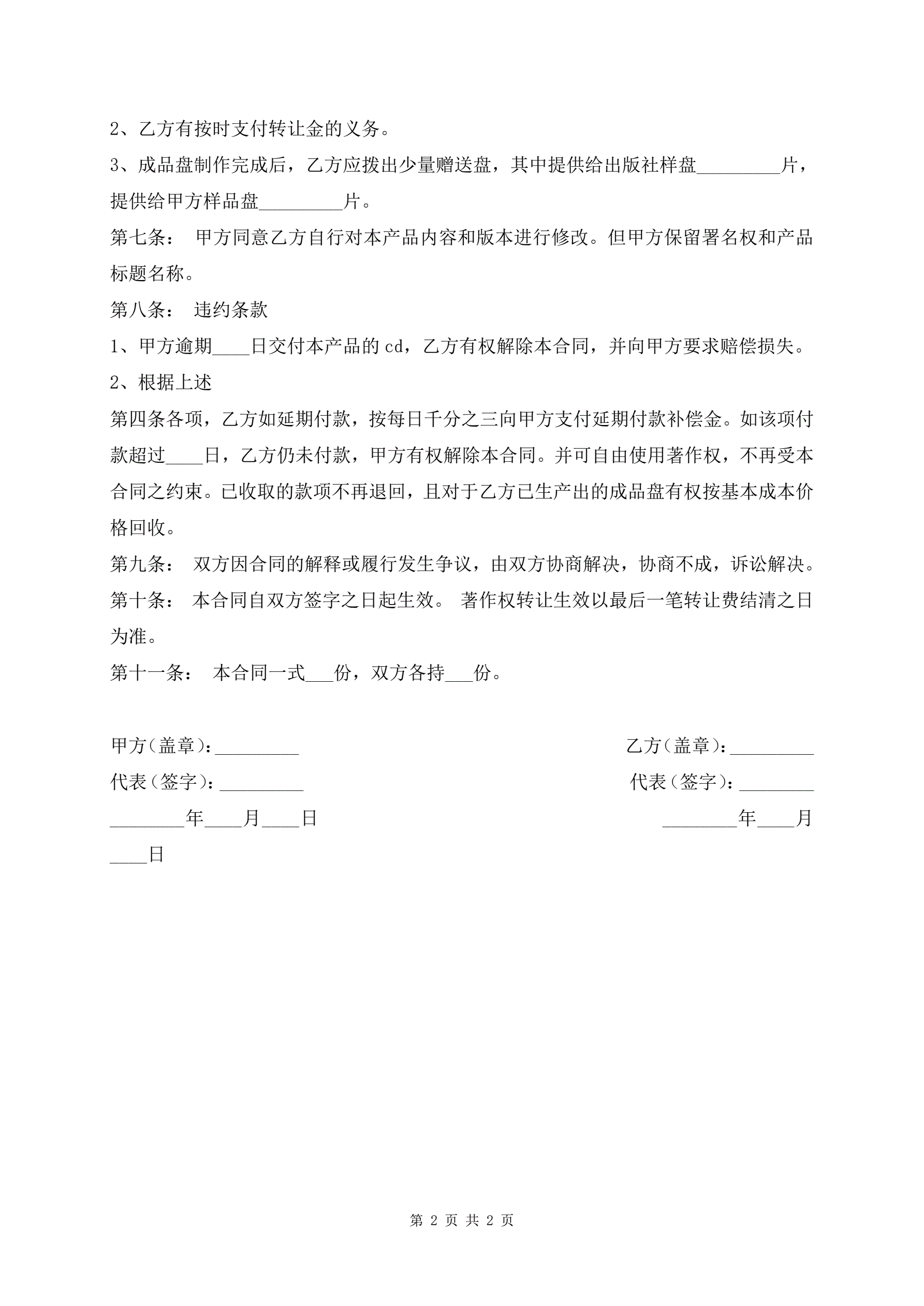 著作权转让通用版合同