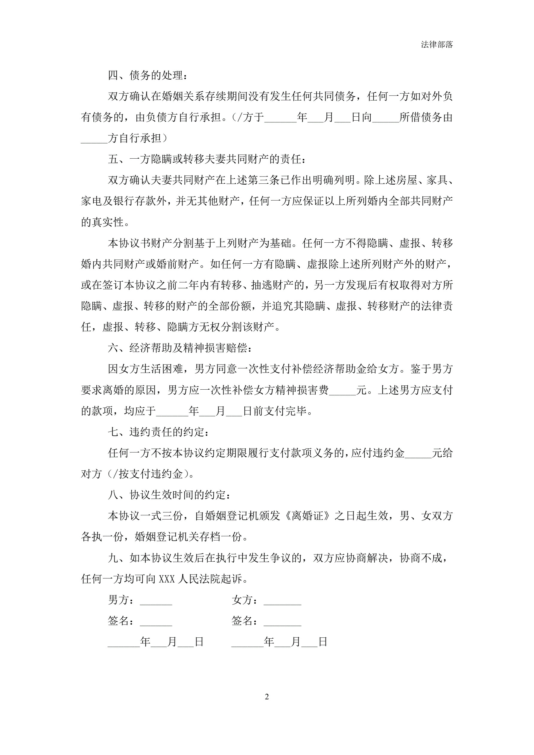 >离婚协议书最新详细版
