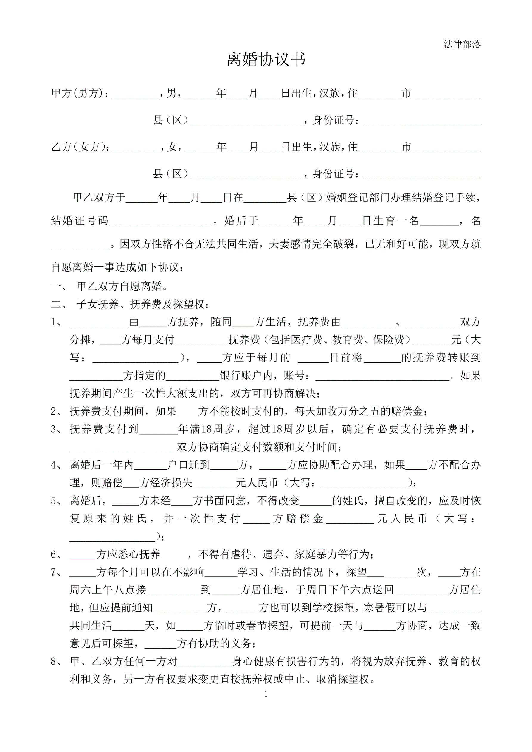离婚协议书最新版本