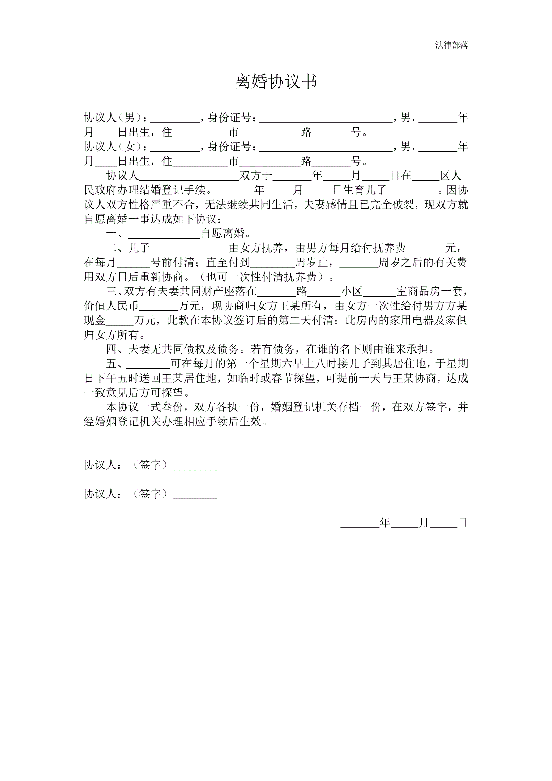 离婚协议书标准版