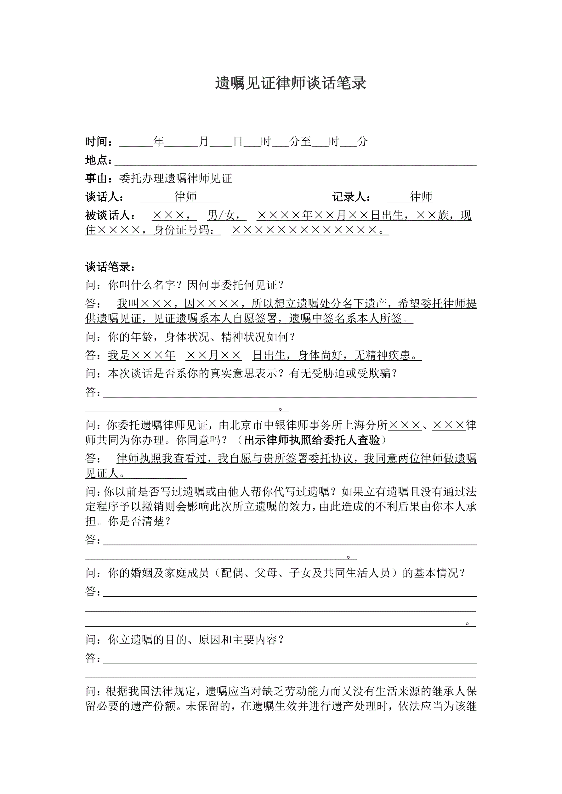 遗嘱见证律师谈话笔录