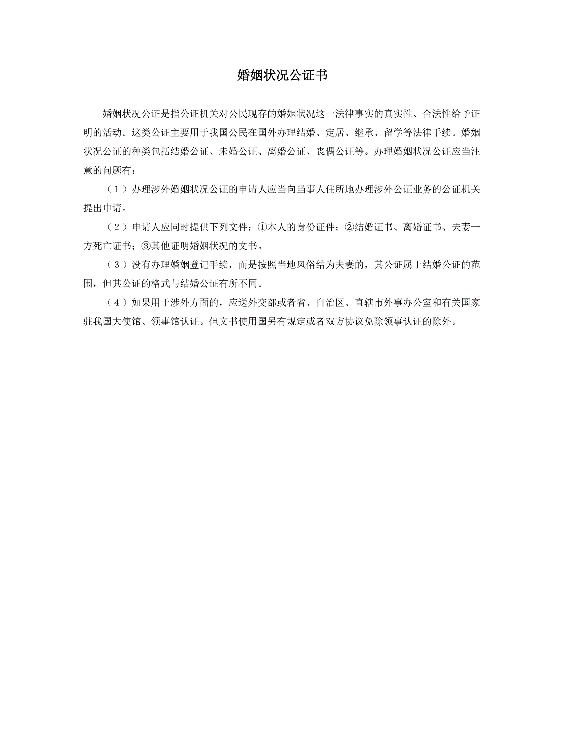 婚姻状况公证书